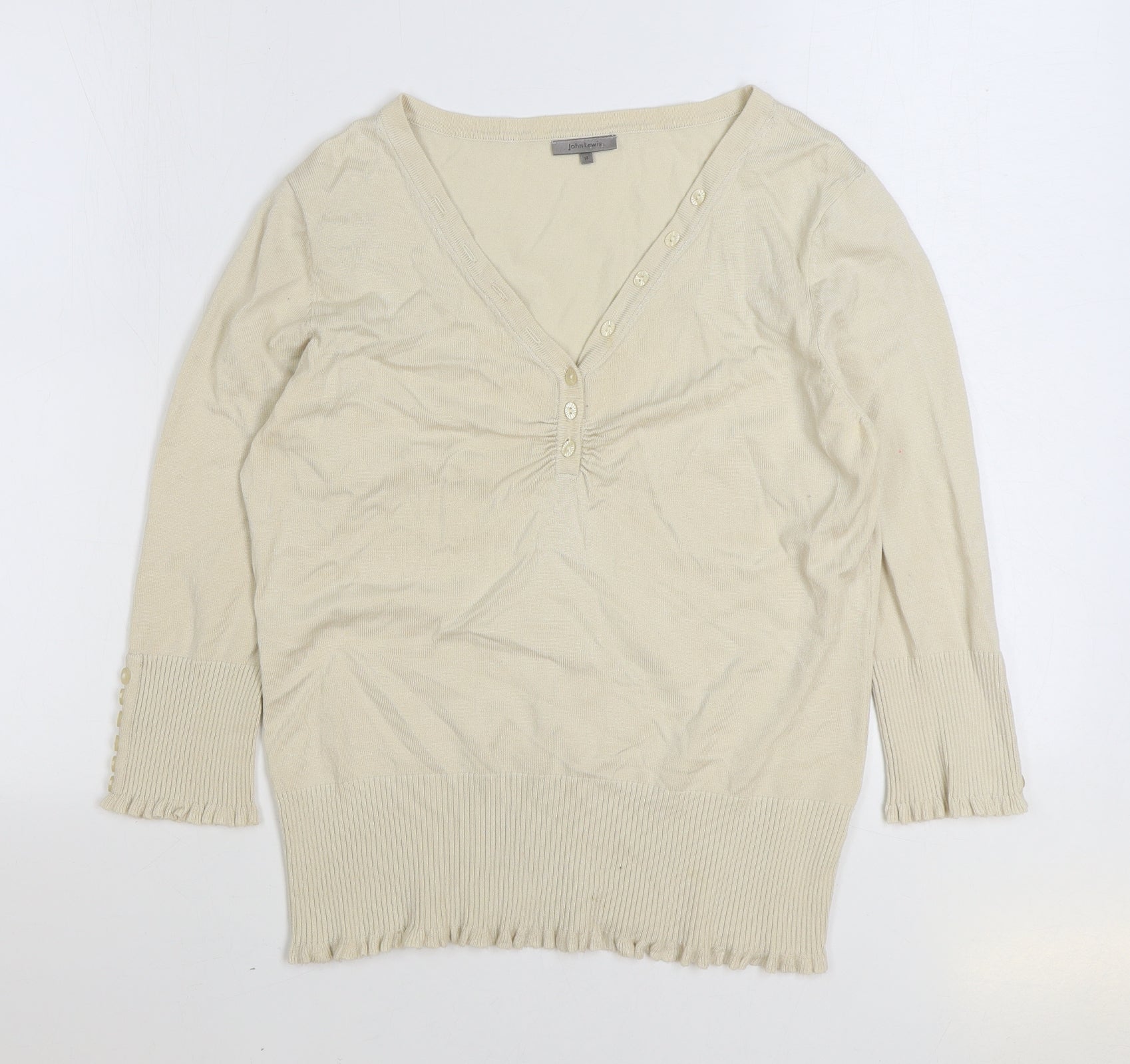 John Lewis Womens Beige V-Neck Viscose Cardigan Jumper Size 14