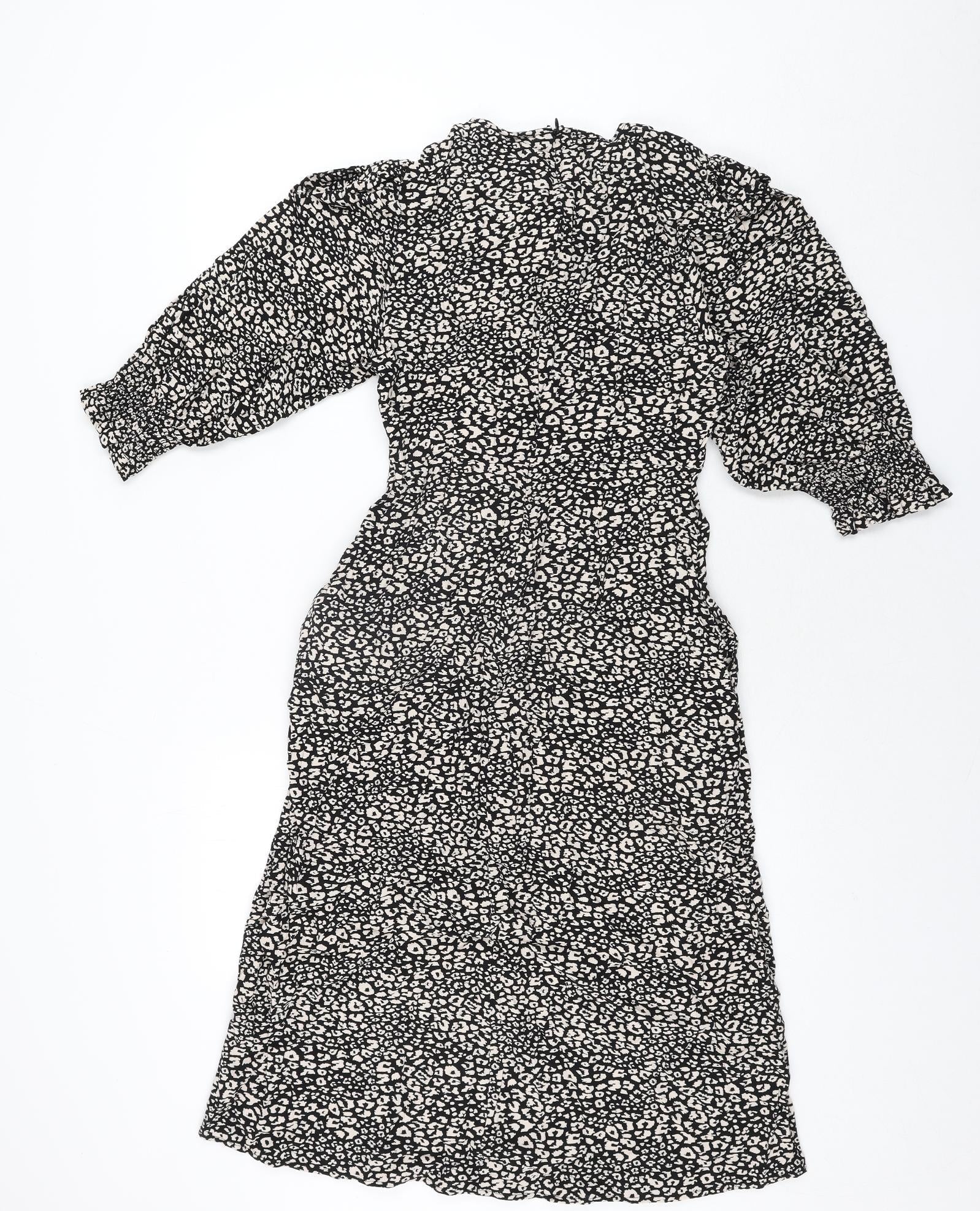 John Lewis Womens Black Animal Print Viscose Shift Size 10 Round Neck Zip - Leopard Print