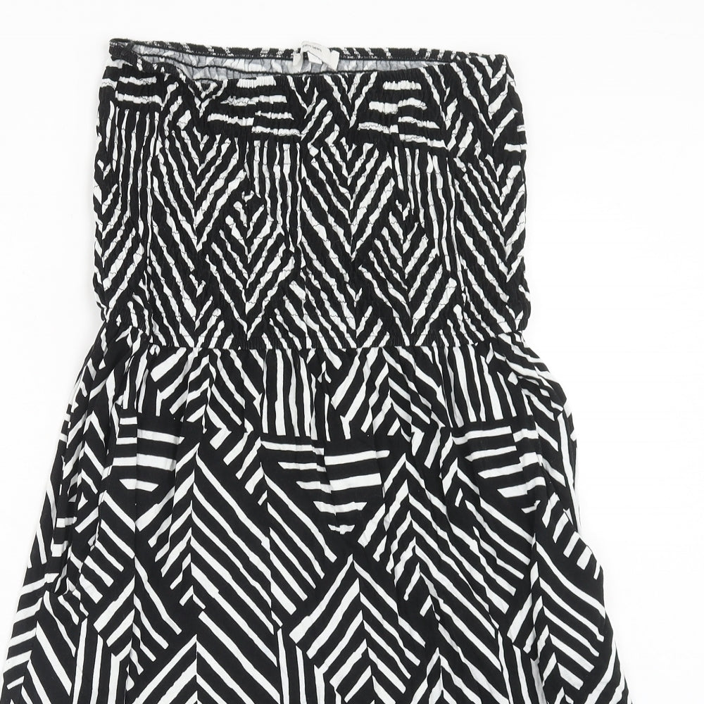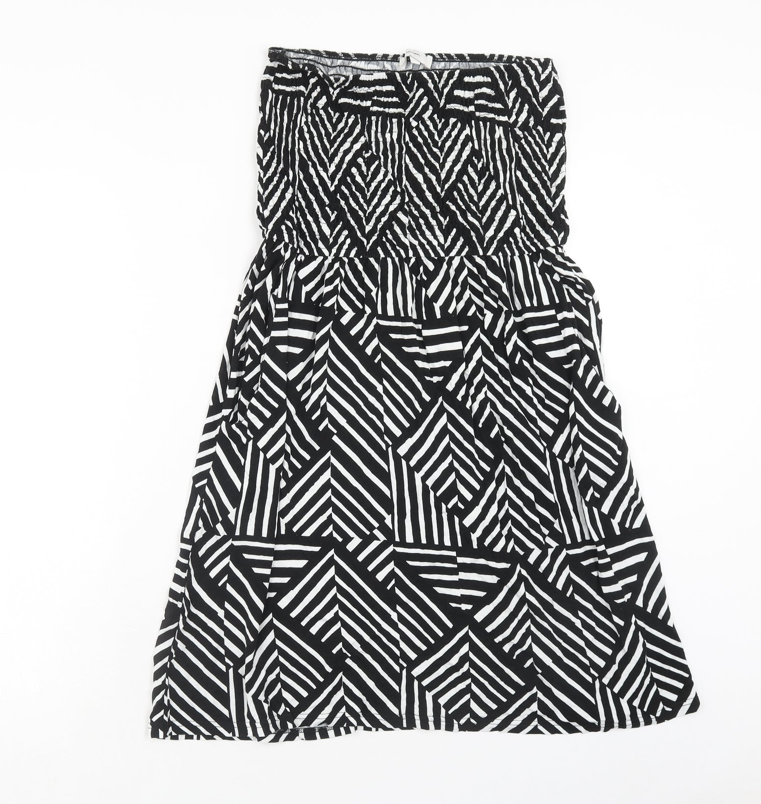 John Lewis Womens Black Geometric Viscose Mini Size L Off the Shoulder Pullover