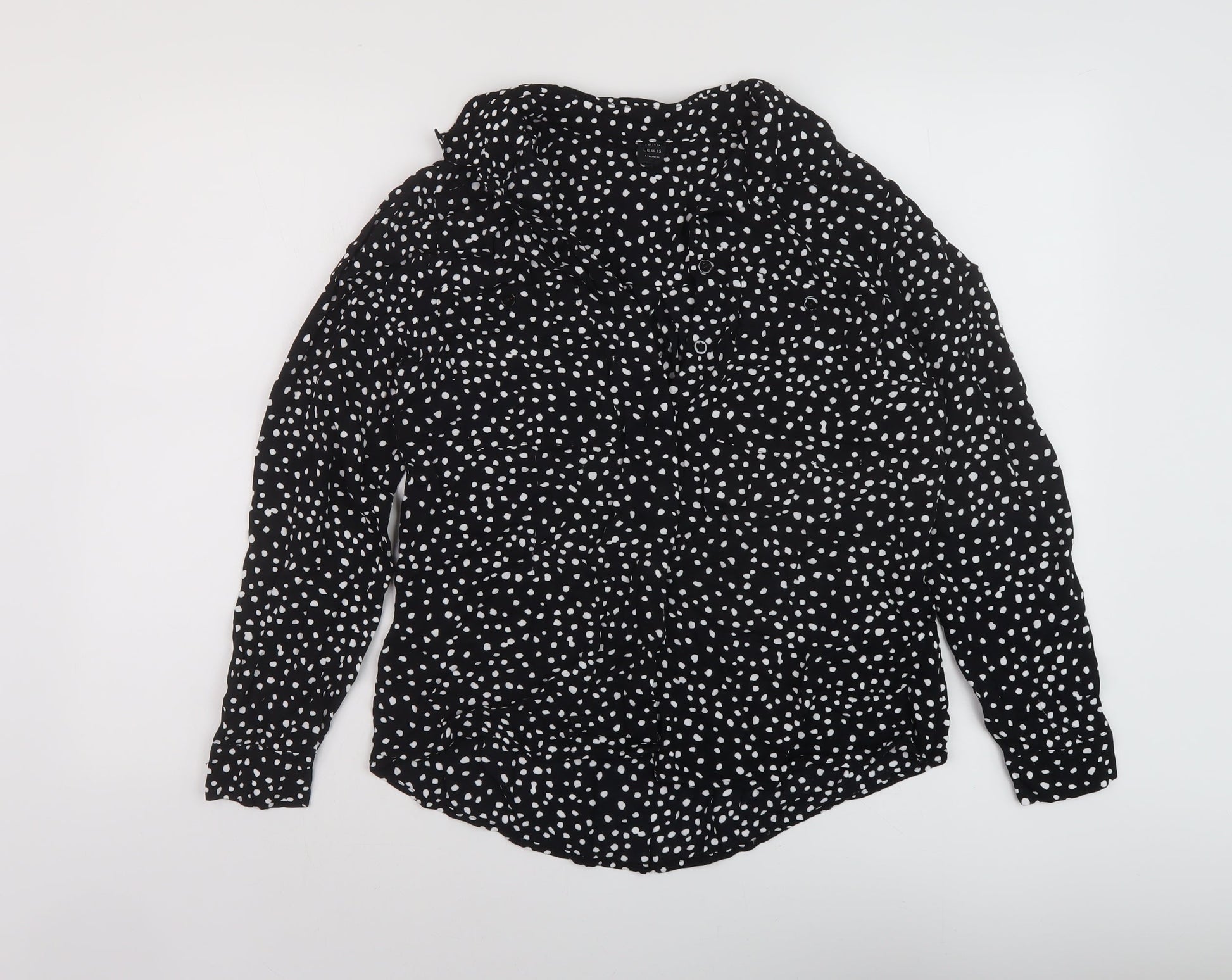 John Lewis Womens Black Polka Dot Viscose Basic Blouse Size 10 Collared