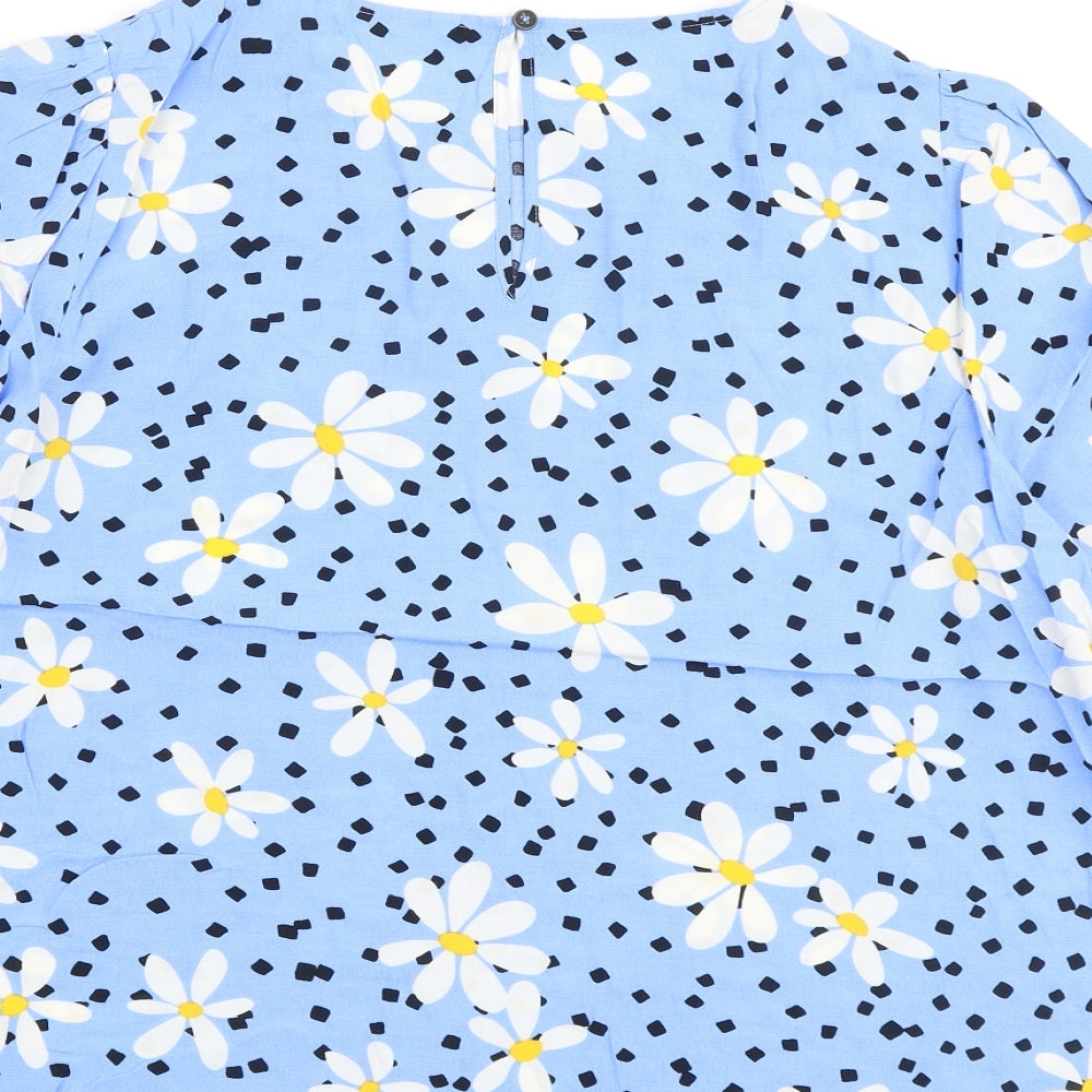 John Lewis Womens Blue Floral Viscose Basic Blouse Size 16 Round Neck
