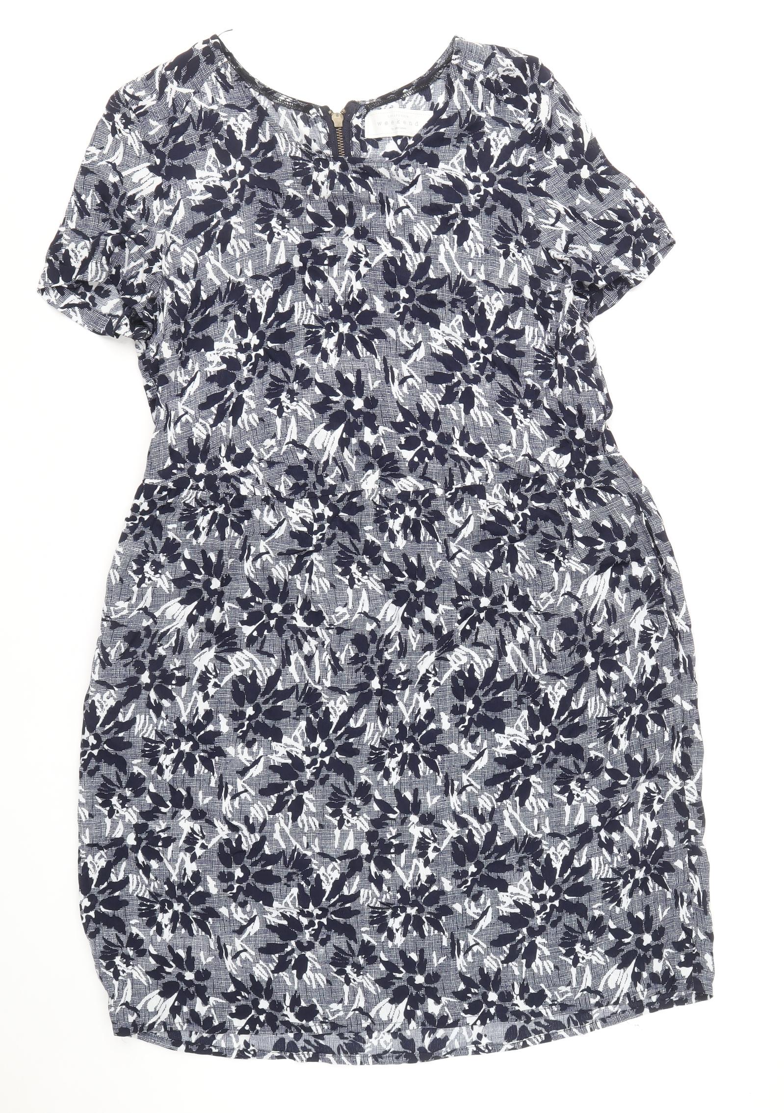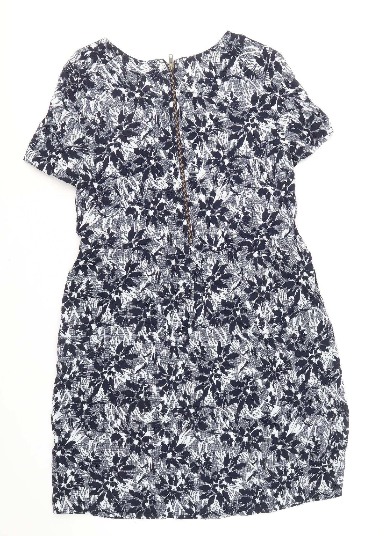 John Lewis Womens Blue Floral Viscose Shift Size 10 Boat Neck Zip