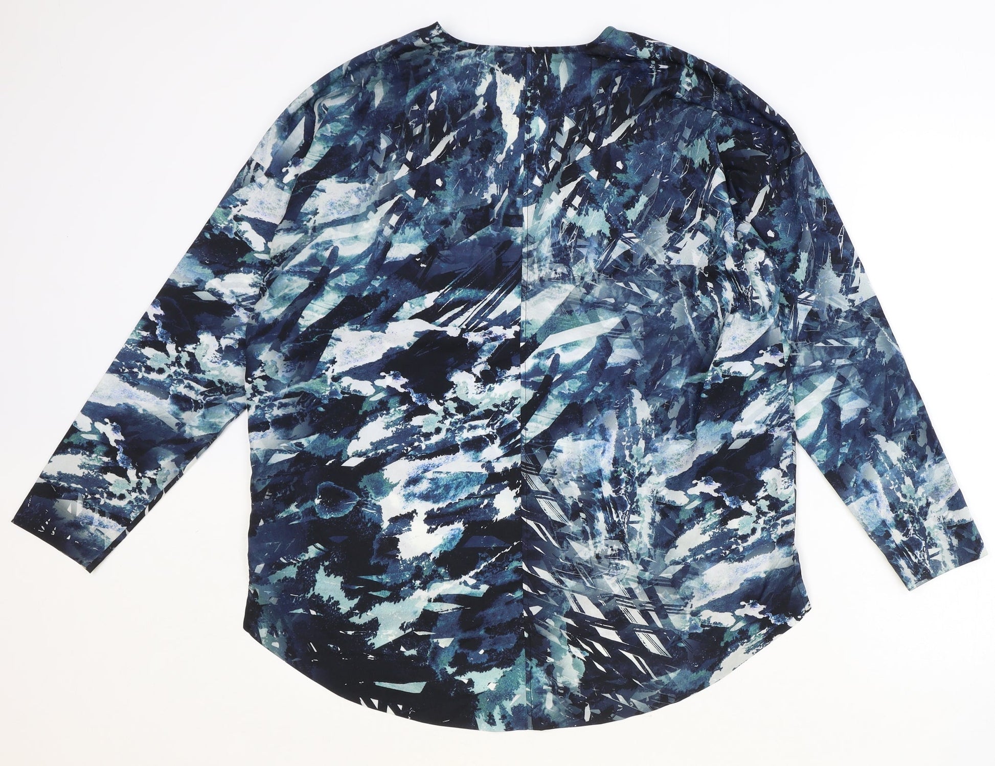 John Lewis Womens Blue Geometric Polyester Basic Blouse Size 12 V-Neck