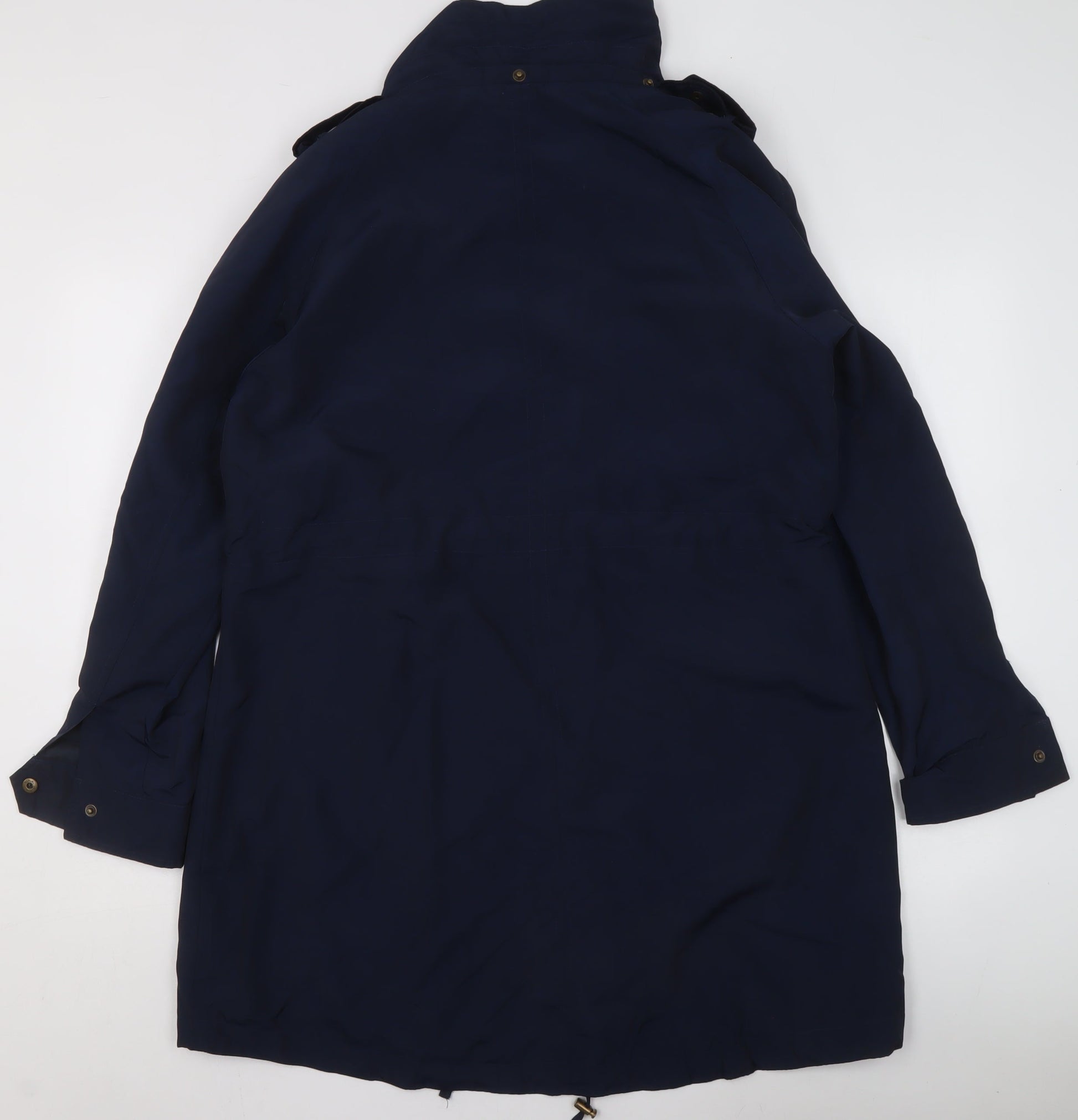 John Lewis Womens Blue Parka Coat Size 14 Hooded Long Jacket