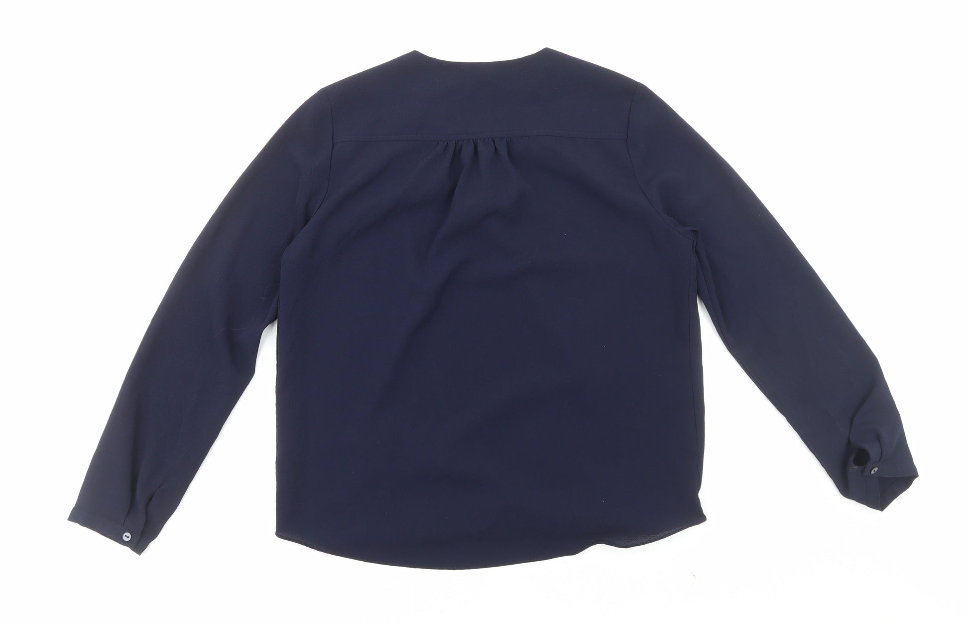 John Lewis Womens Blue Polyester Basic Blouse Size 12 V-Neck