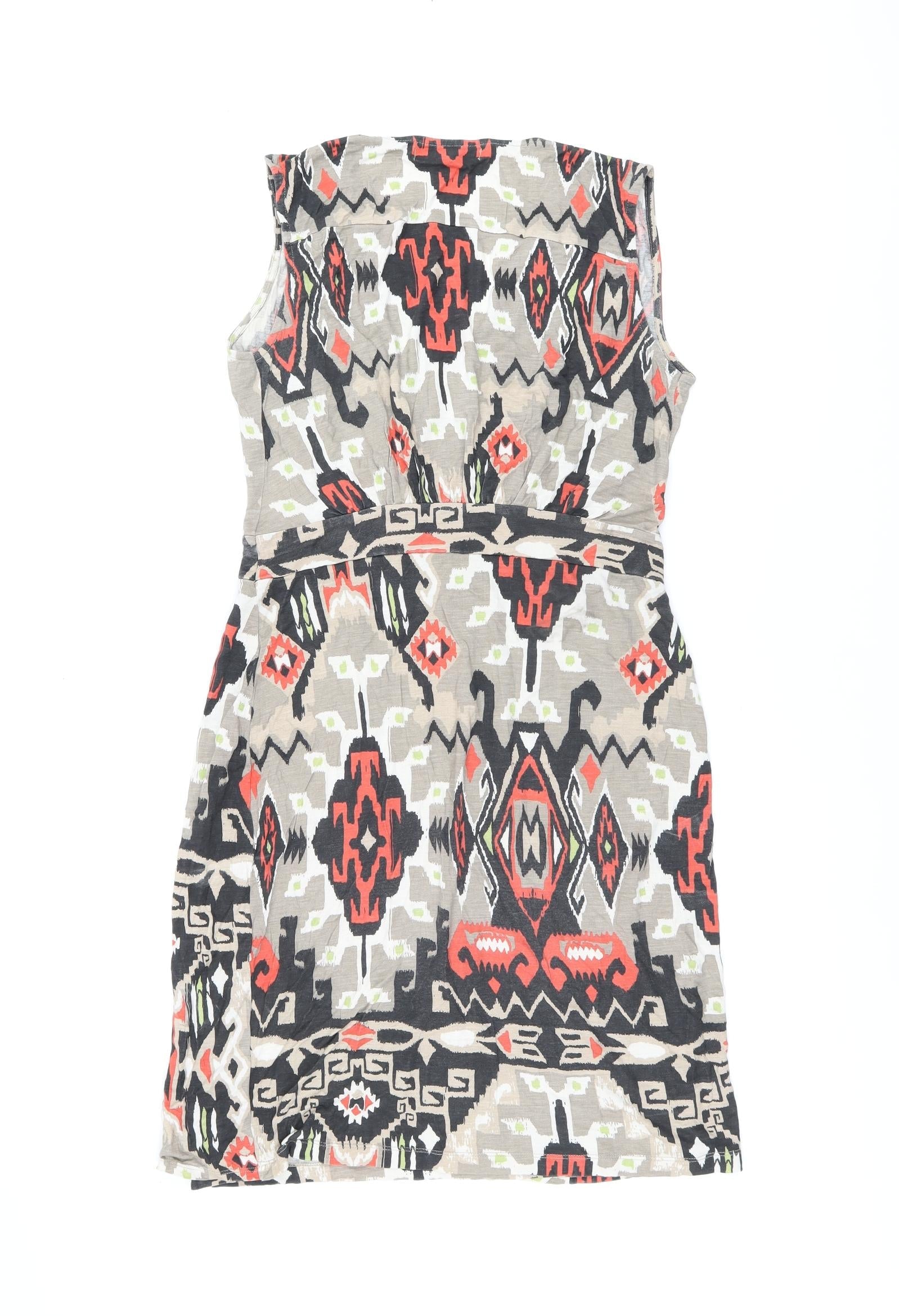 John Lewis Womens Brown Geometric Viscose Mini Size M V-Neck Pullover