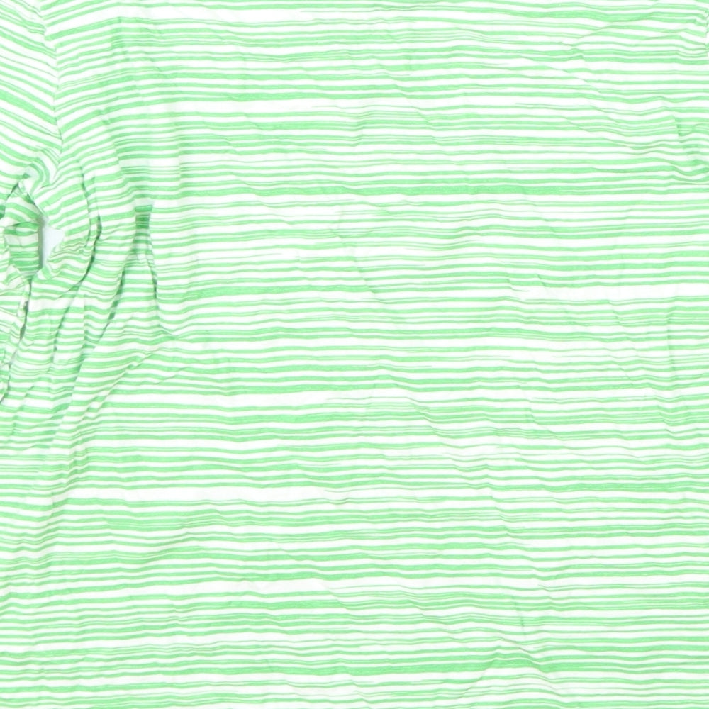 John Lewis Womens Green Striped Viscose Basic T-Shirt Size 10 Round Neck