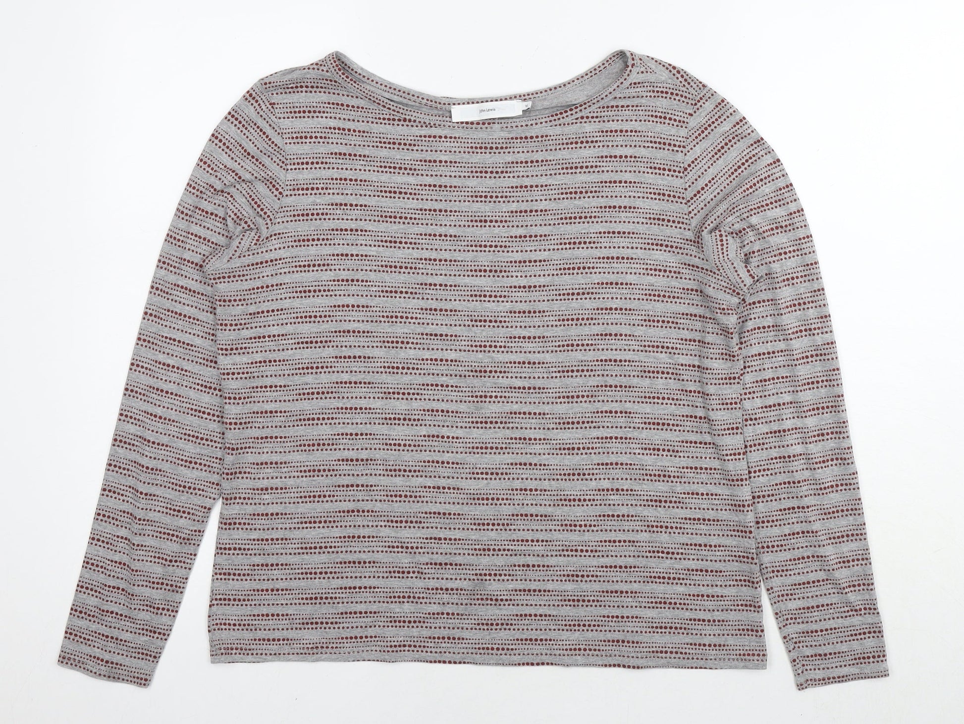 John Lewis Womens Grey Striped Viscose Basic T-Shirt Size 16 Round Neck