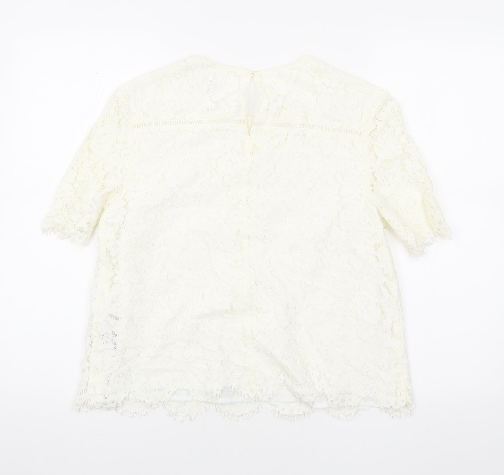John Lewis Womens Ivory Geometric Cotton Basic T-Shirt Size 12 Round Neck