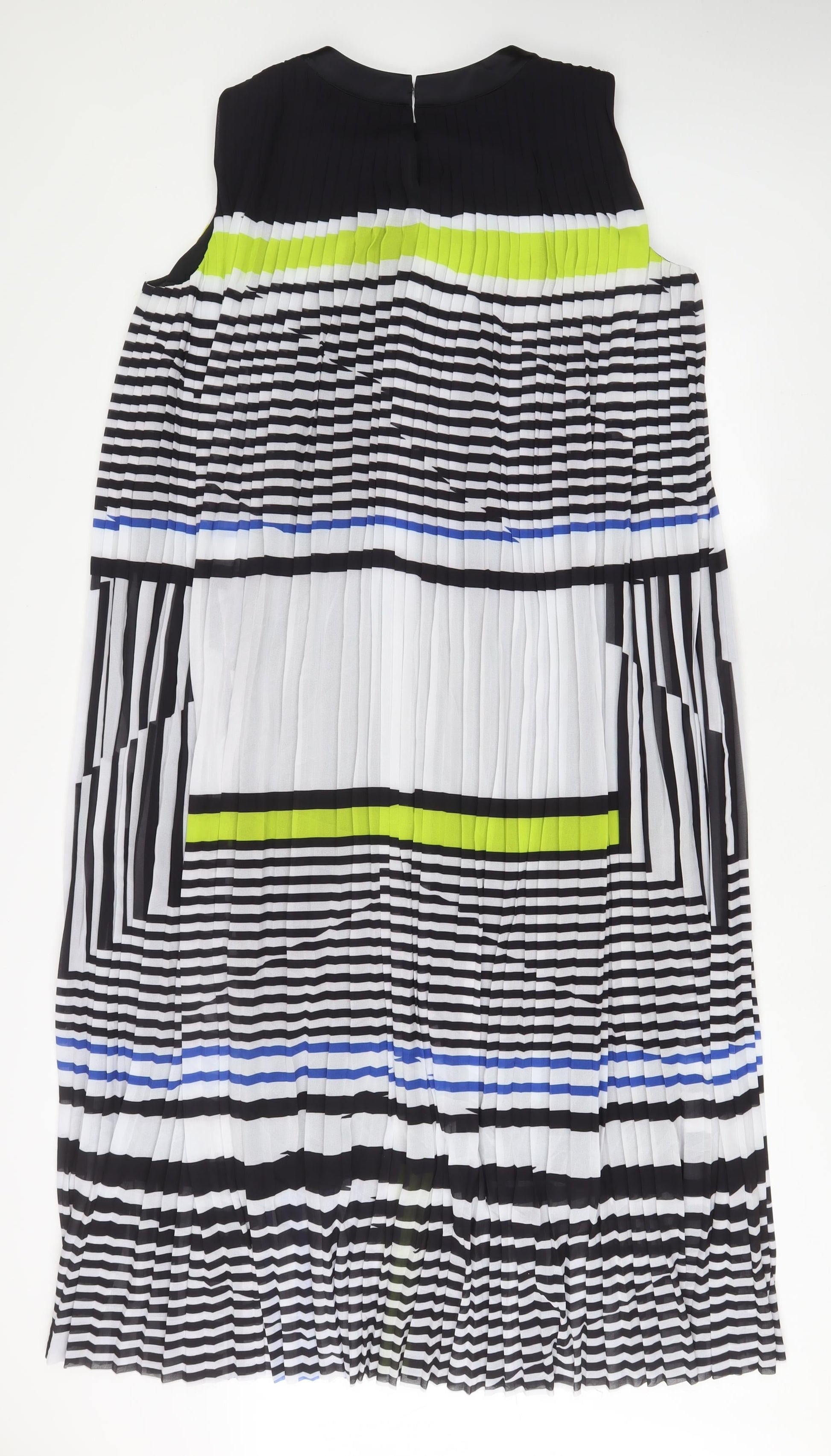 John Lewis Womens Multicoloured Striped Polyester A-Line Size 16 Round Neck Hook & Eye - Pleated