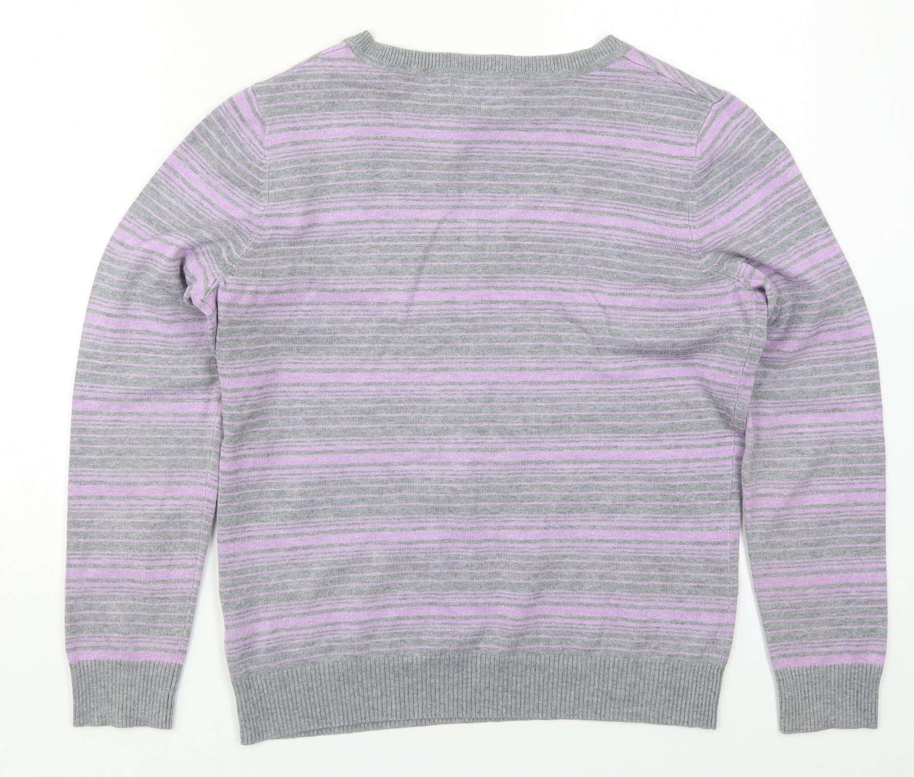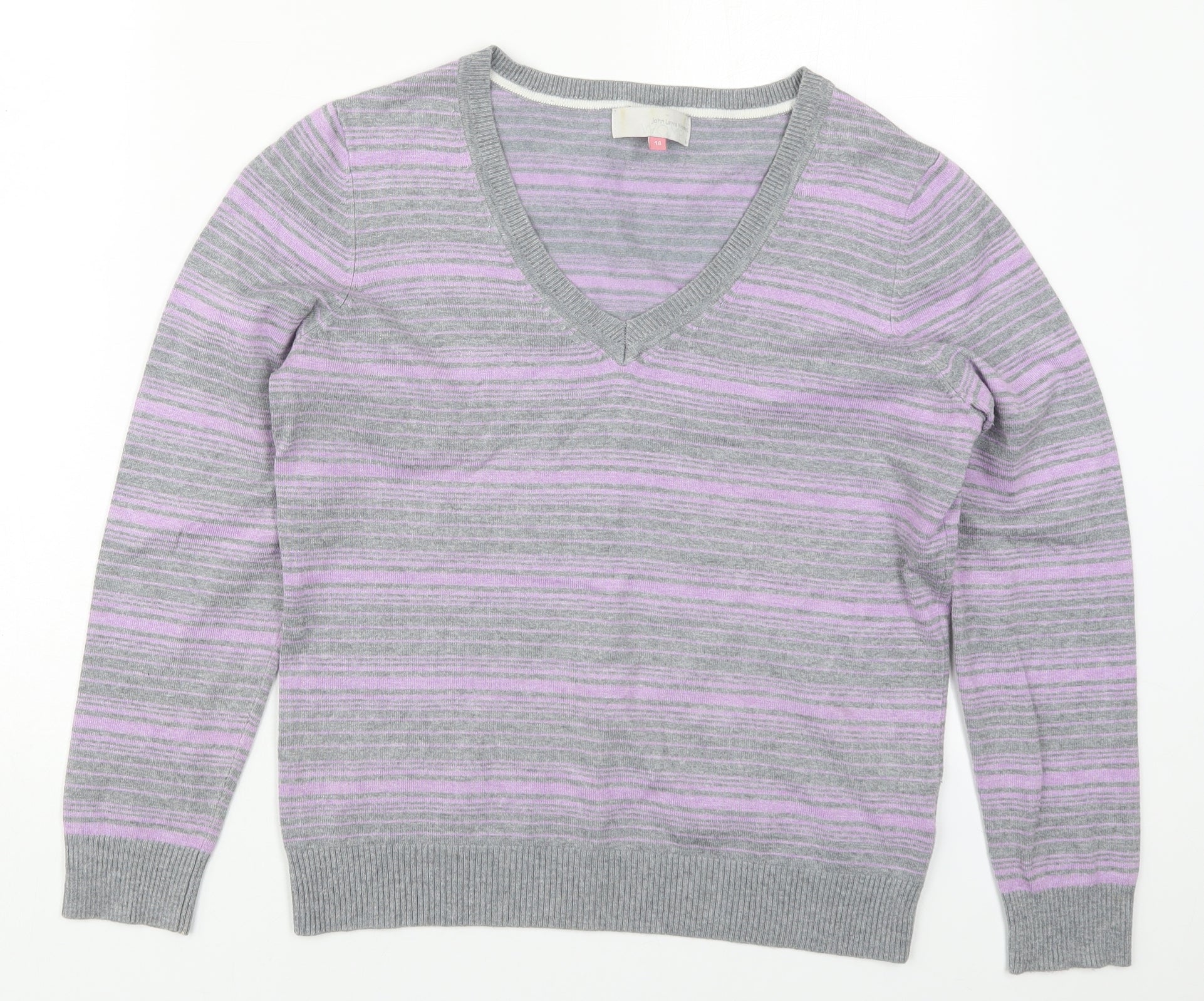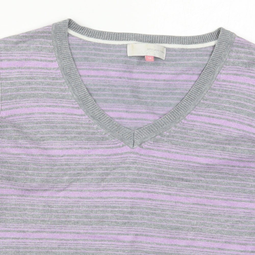 John Lewis Womens Purple V-Neck Striped Viscose Pullover Jumper Size 14