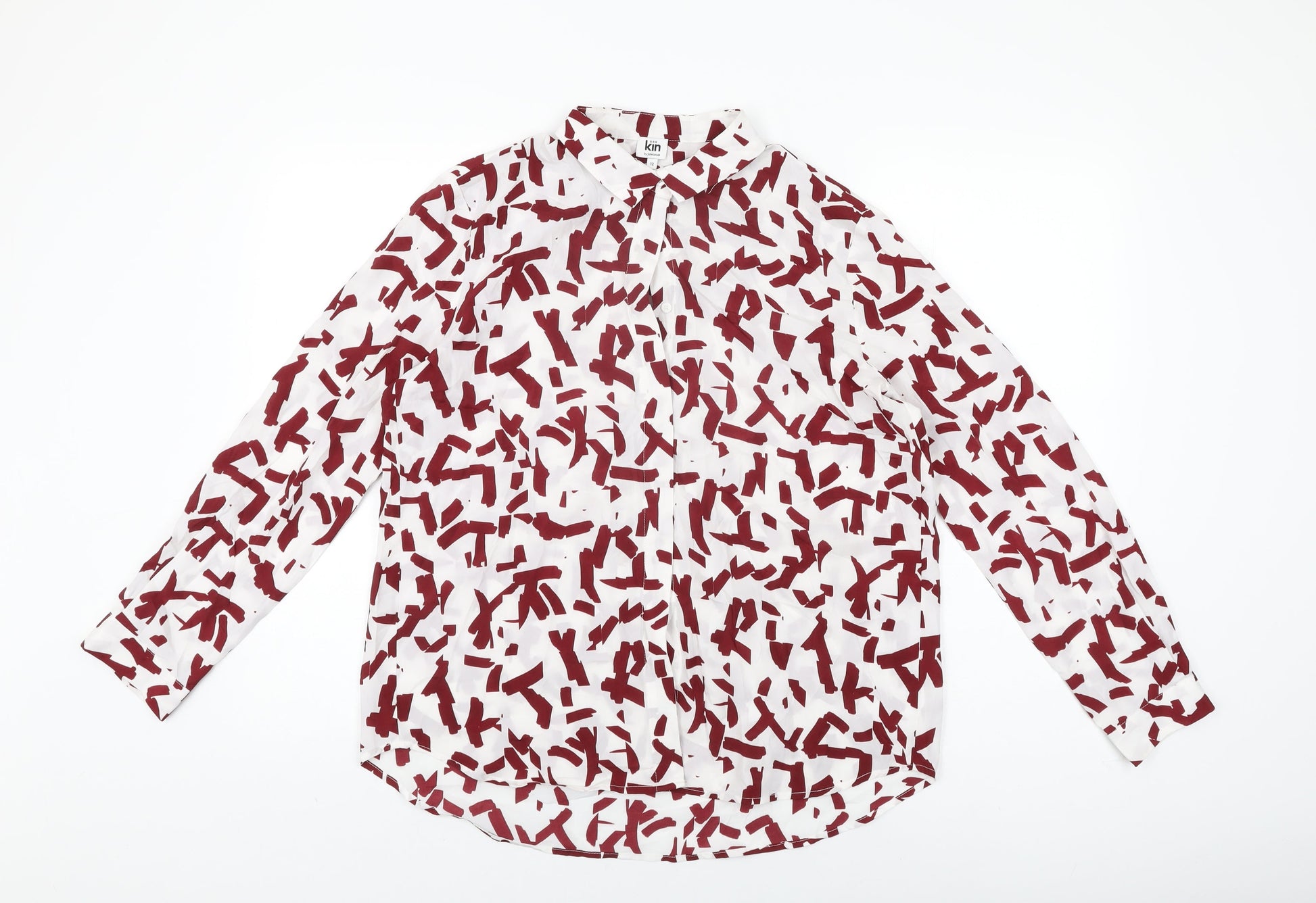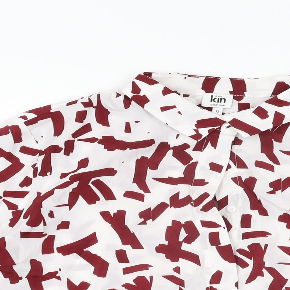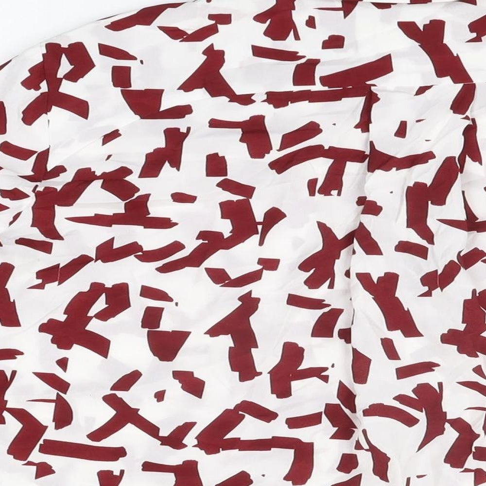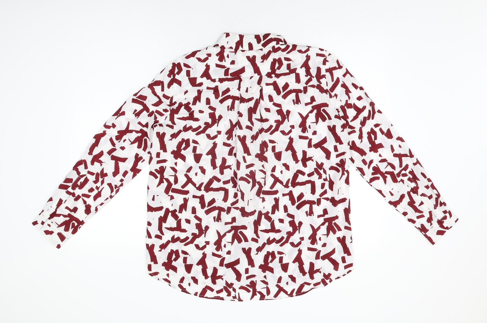 John Lewis Womens White Geometric Polyester Basic Button-Up Size 12 Collared