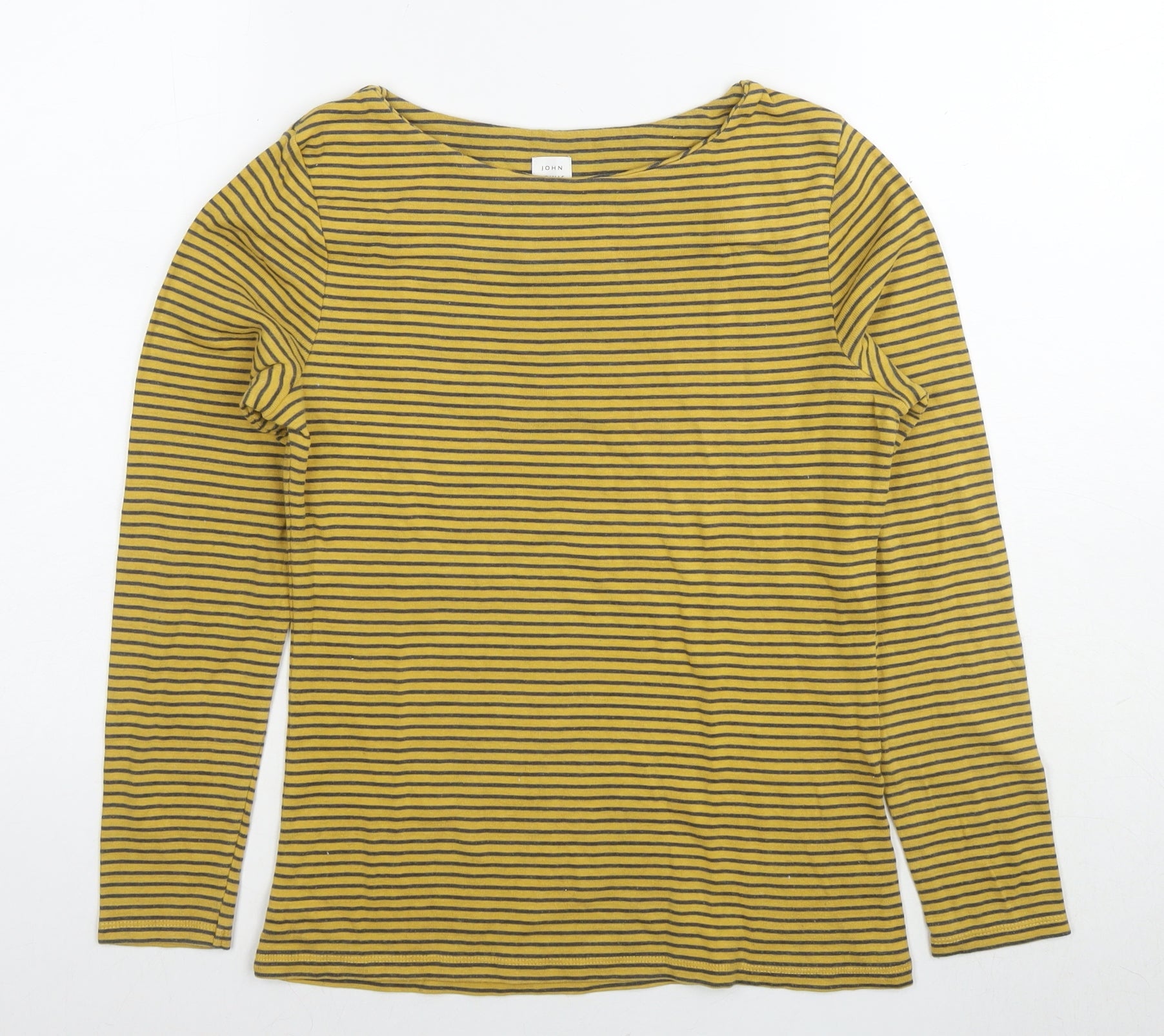 John Lewis Womens Yellow Striped Cotton Jersey Blouse Size 8 Boat Neck