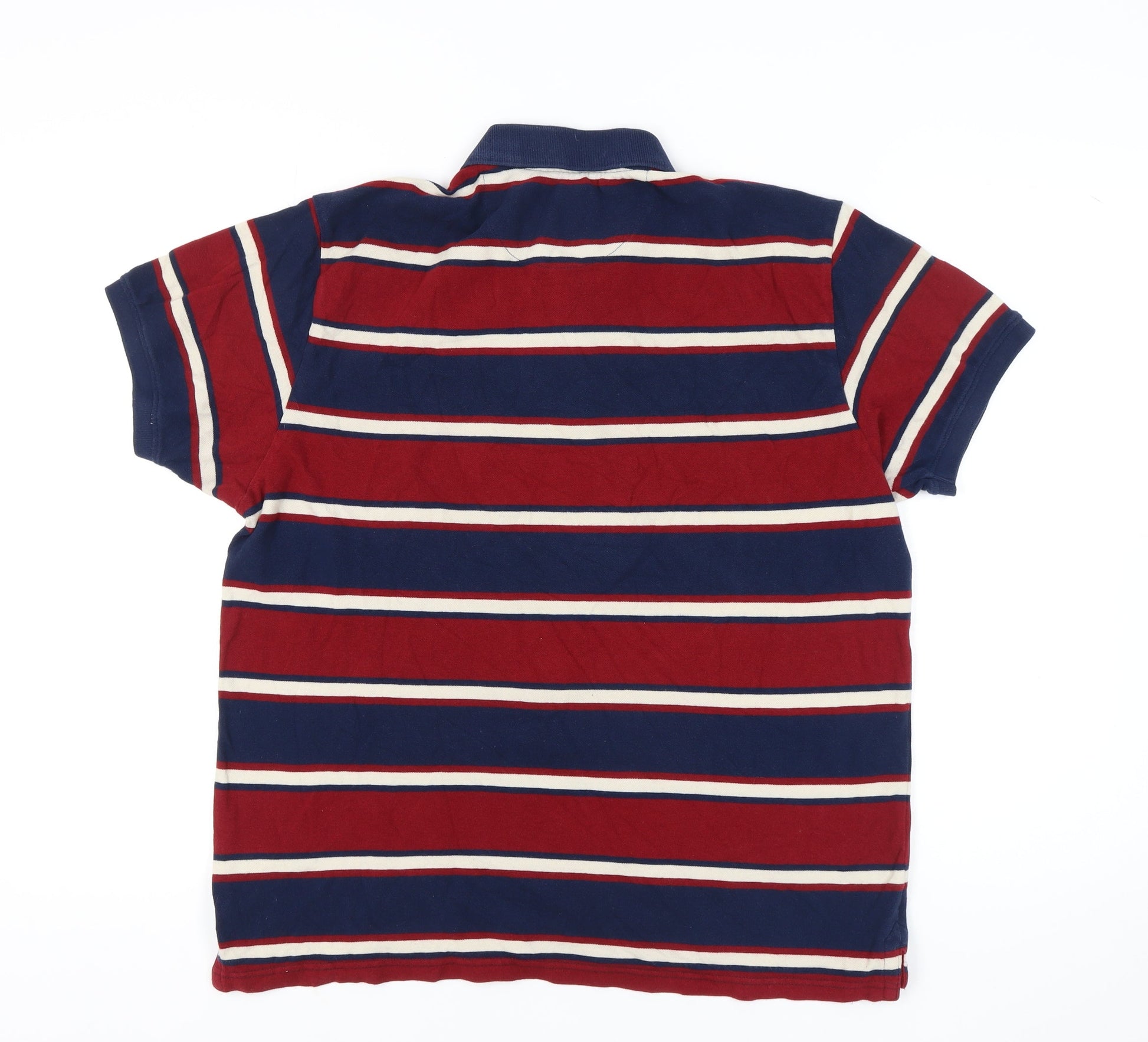 John Players Men's Red Striped Polo Shirt XL Slim Fit