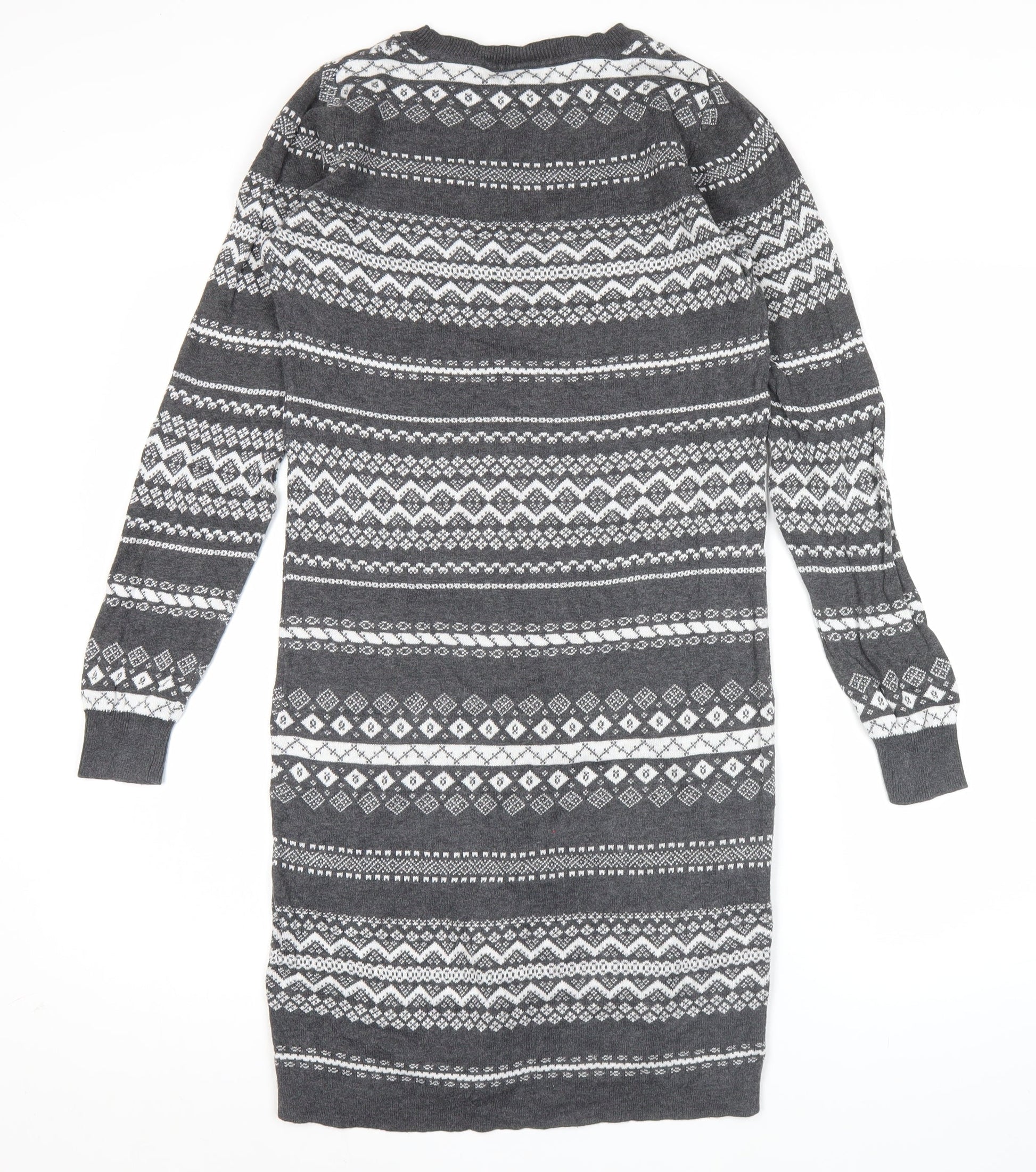 JoJo Maman Bébé Women’s Grey Fair Isle Knit Jumper Dress S