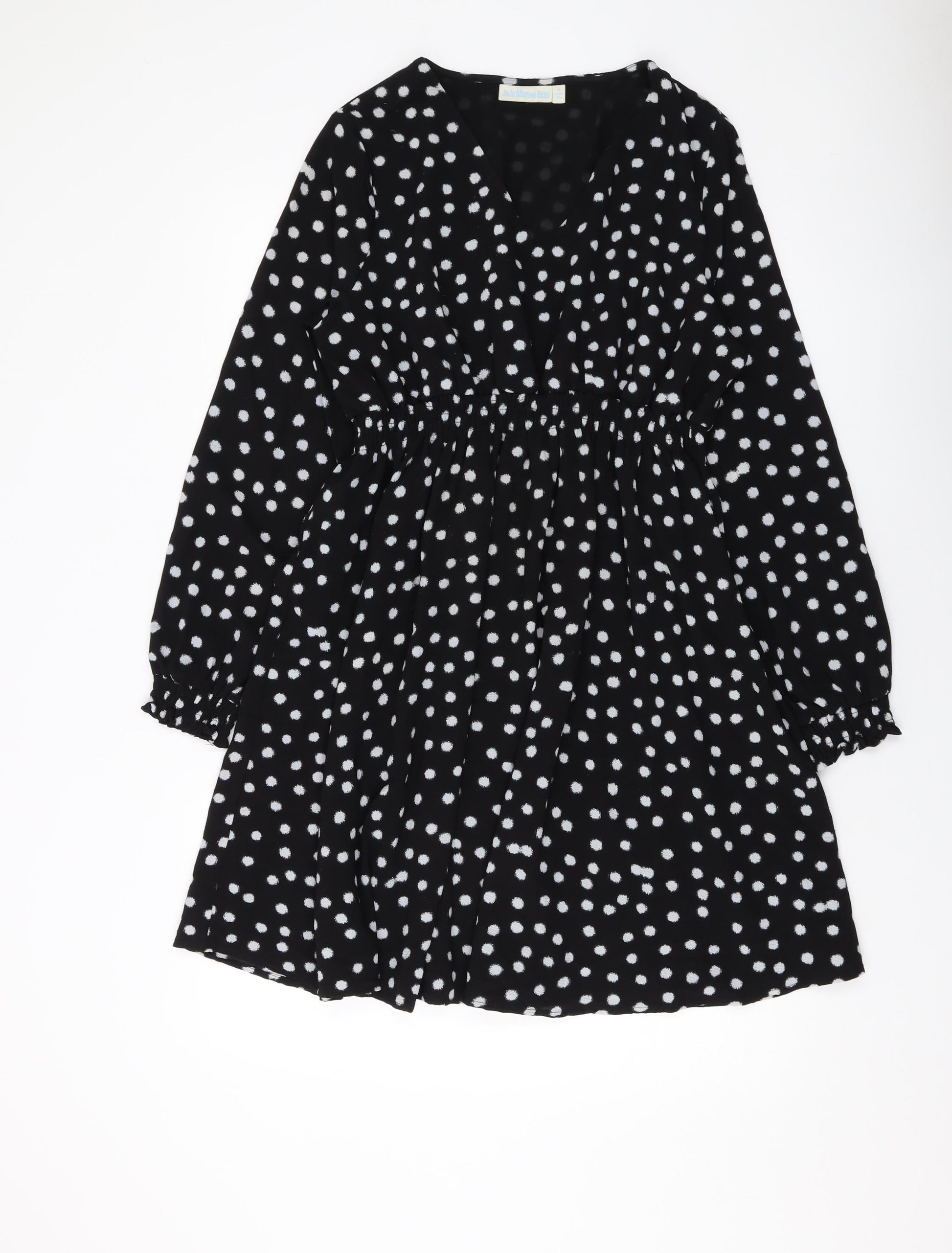 JoJo Maman Bébé Womens Black Polka Dot Polyester A-Line Size M V-Neck Pullover