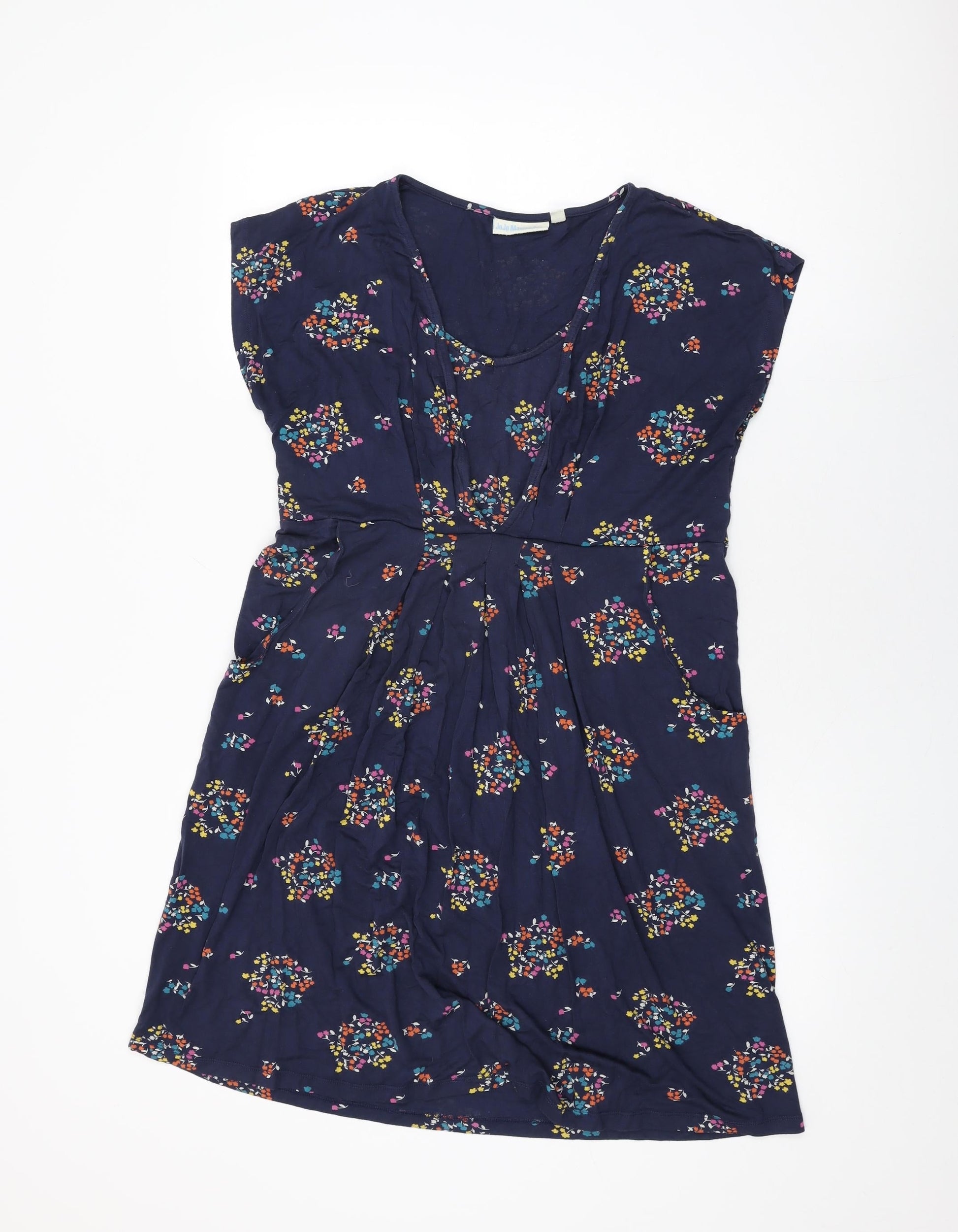 JoJo Maman Bébé Womens Blue Floral Viscose Shift Size M Round Neck Pullover