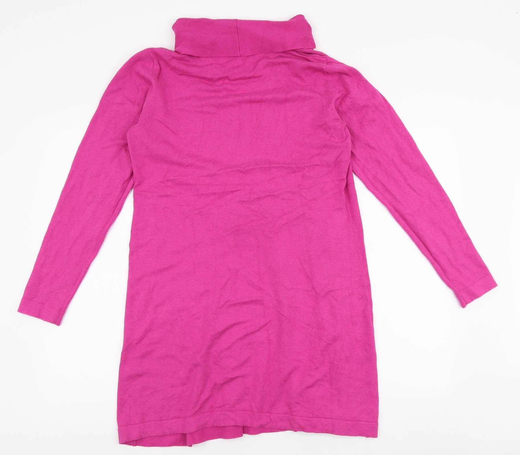 JoJo Maman Bébé Womens Pink Cotton Jumper Dress Size 12 Roll Neck Pullover