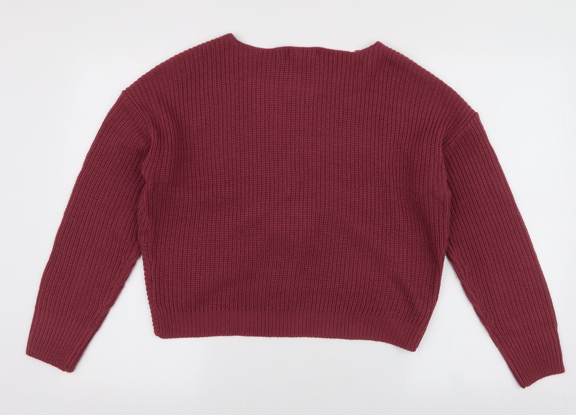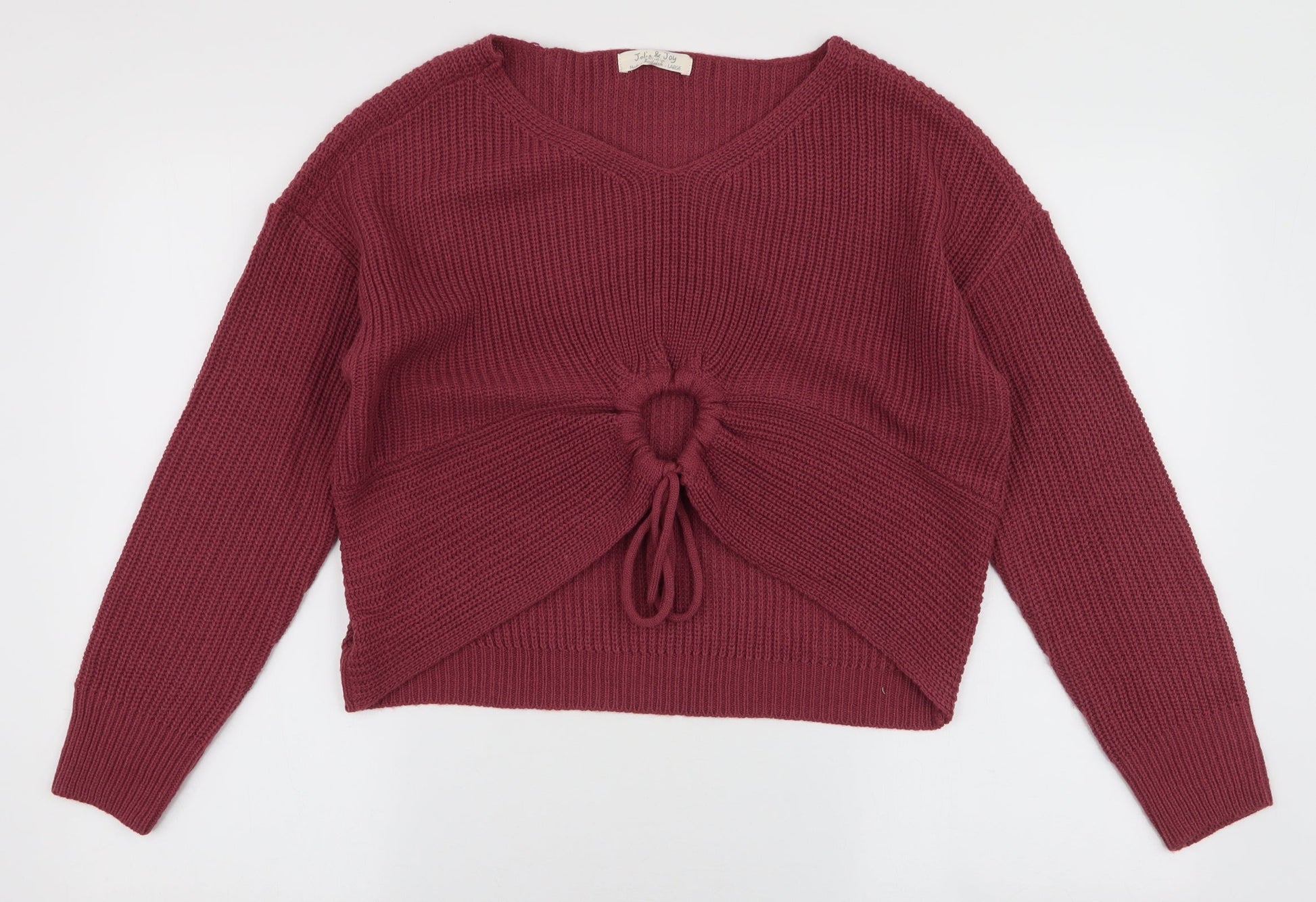 Jolie & Joy Womens Pink V-Neck Acrylic Pullover Jumper Size L - Cropped Tie detail