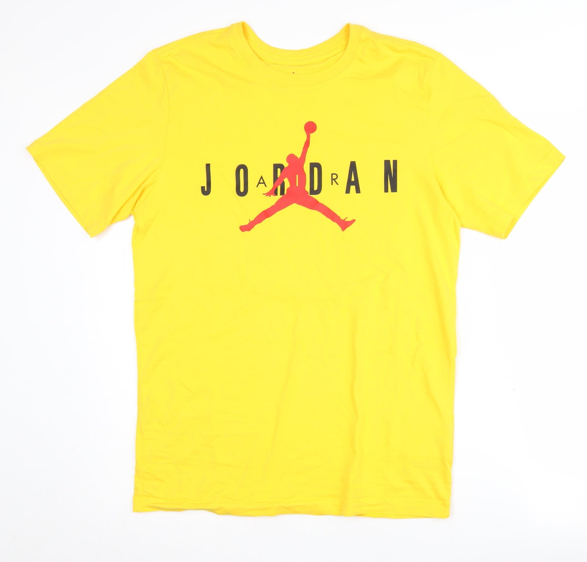 Jordan Men's Yellow Logo T-Shirt, Size S, Cotton, Graphic Print