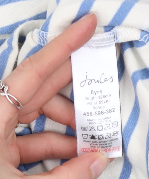 Joules Girls Blue Striped Long Sleeve Cotton Nautical T-Shirt 8 Years