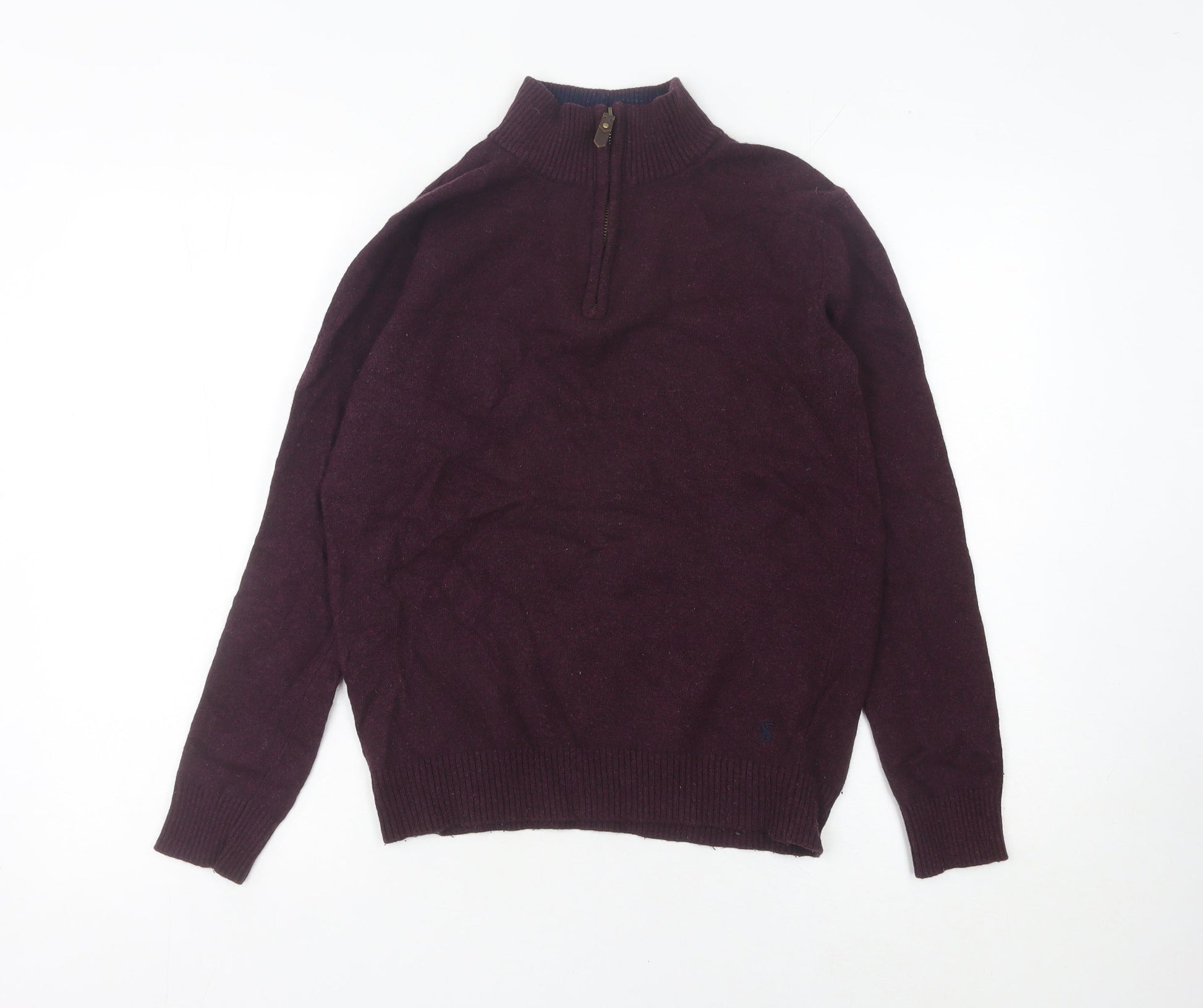 Joules Men's Purple Wool Blend 1/4 Zip Mock Neck Jumper Size S