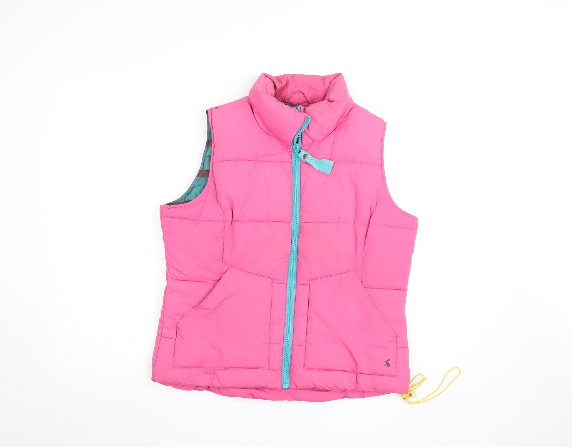 Joules Women’s Pink Puffer Waistcoat Size 14 Polyester Zip Front