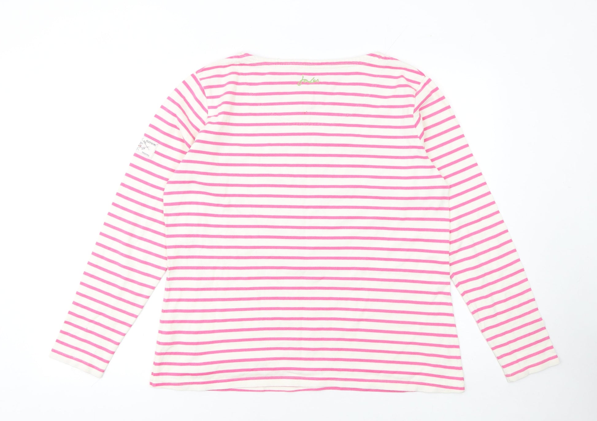 Joules Women’s Pink White Striped Long Sleeve Cotton Nautical Top UK 16