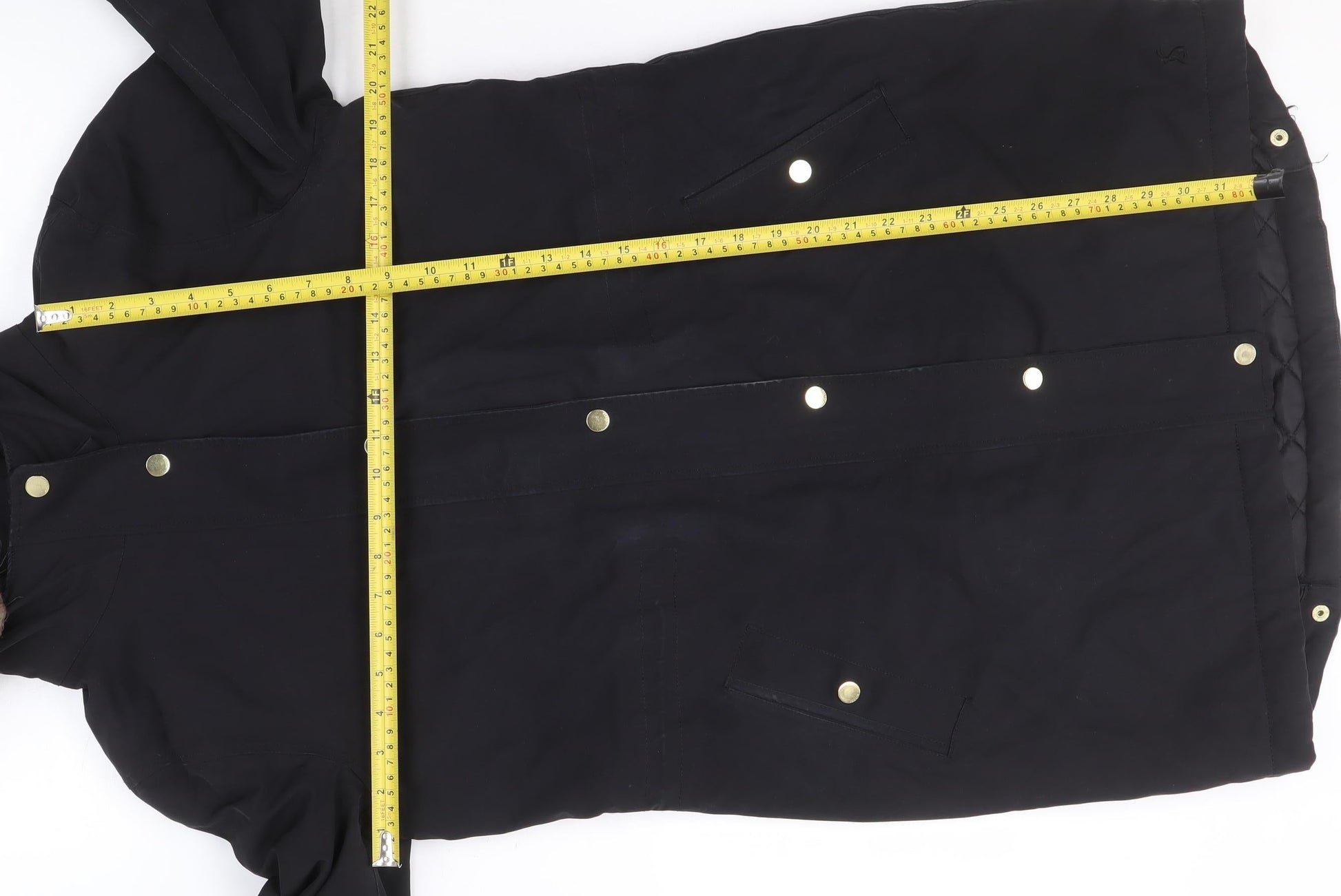 Joules Womens Black Fur Trim Hooded Parka Coat Size 10
