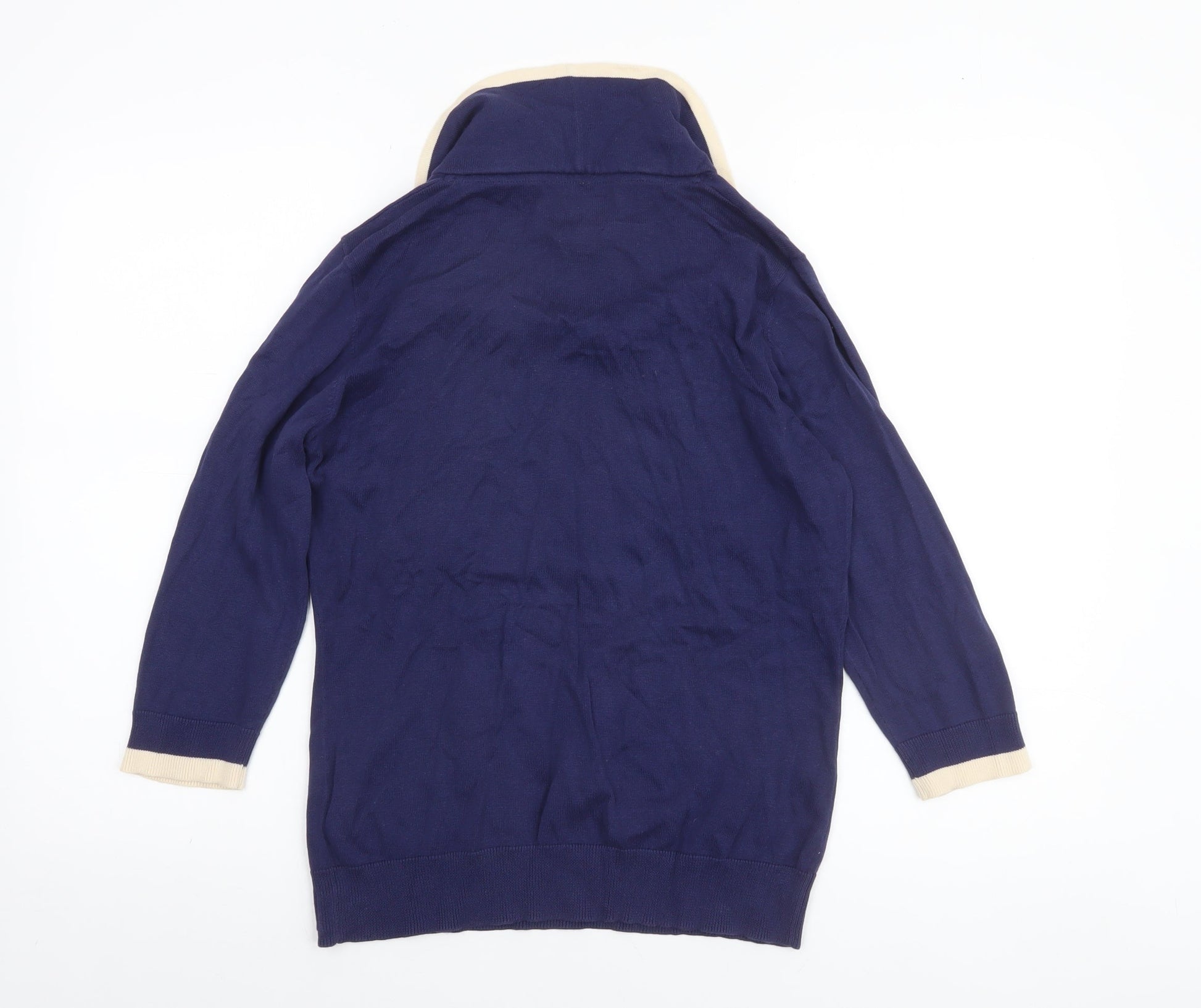 Joules Women's Blue Cowl Neck 3/4 Sleeve Cotton Jumper Size 14