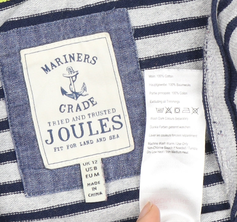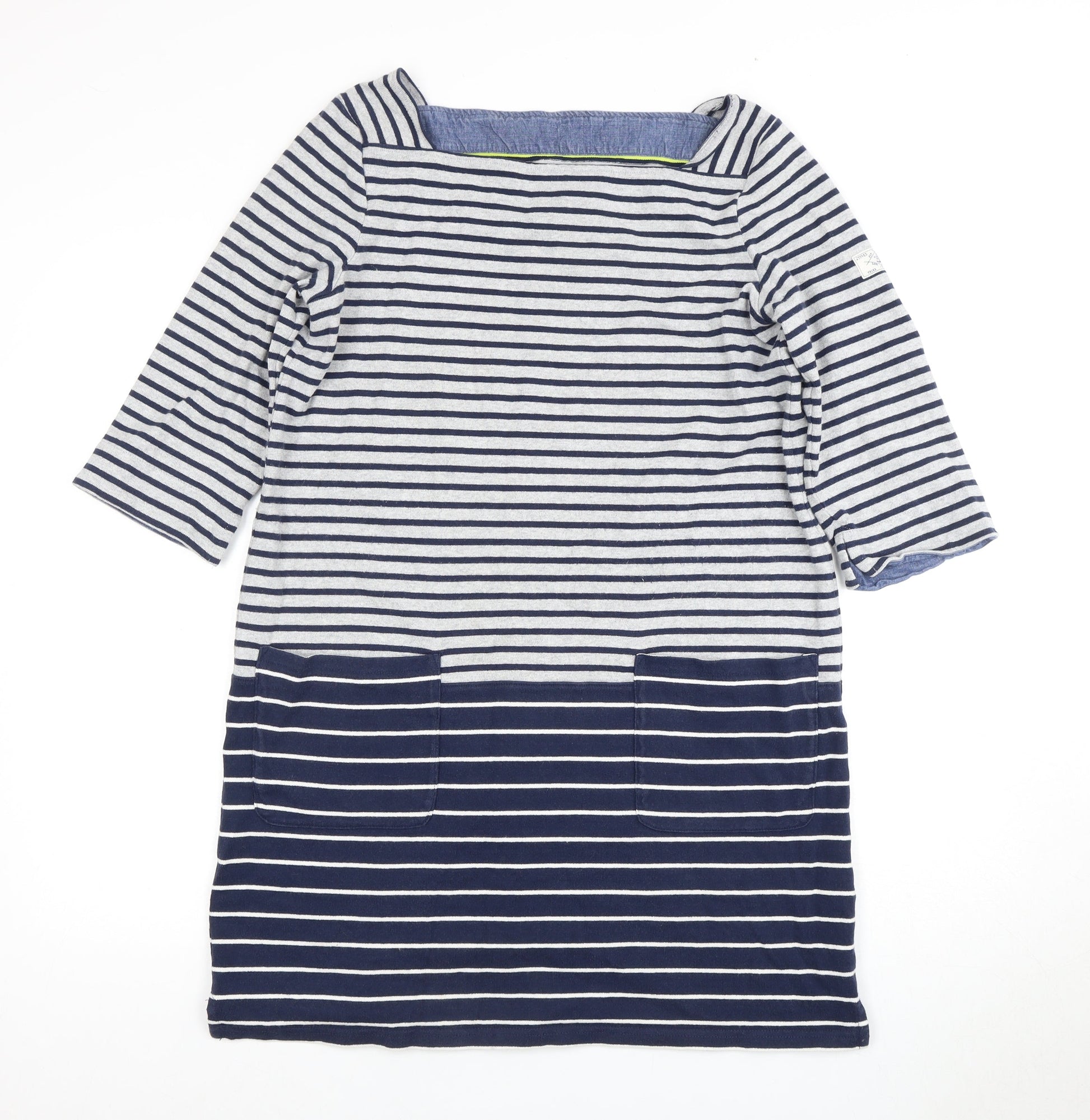 Joules Women's Blue Striped Dress, Size 12, Cotton, 3/4 Sleeve
