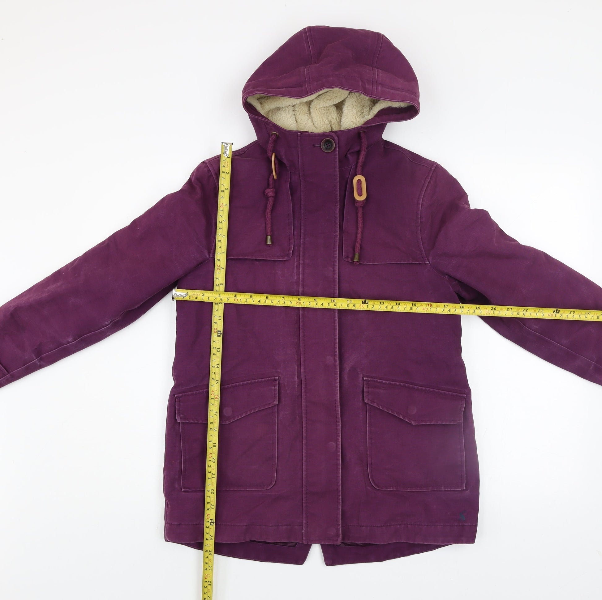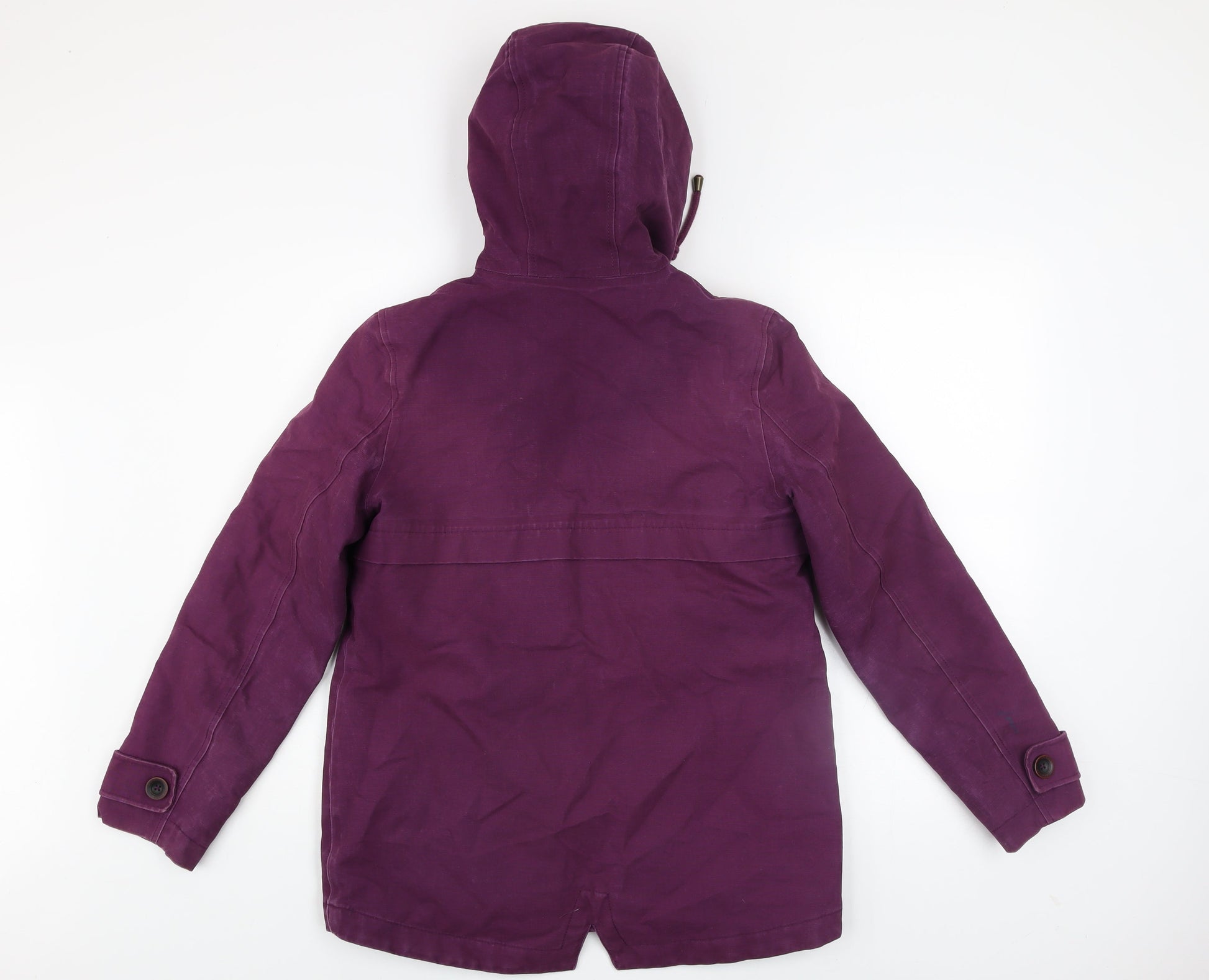 Joules Women's Purple Hooded Parka Coat Size 8 Waterproof Cotton