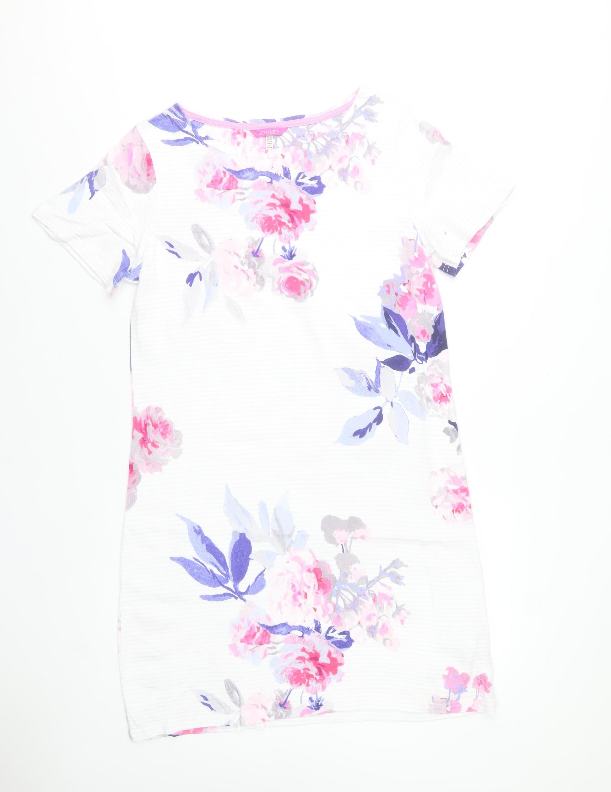Joules Women's White Floral Cotton T-Shirt Dress Size 16