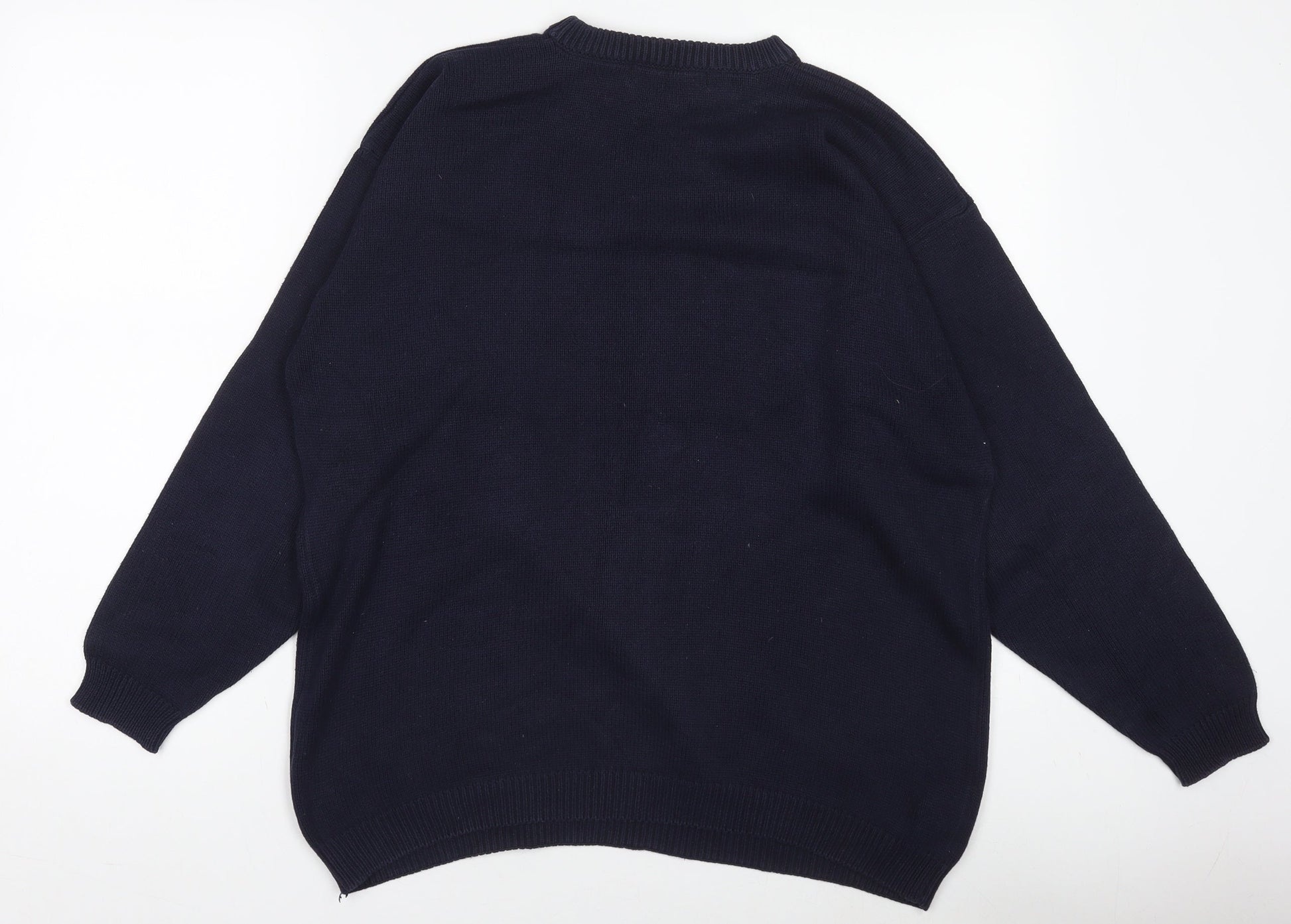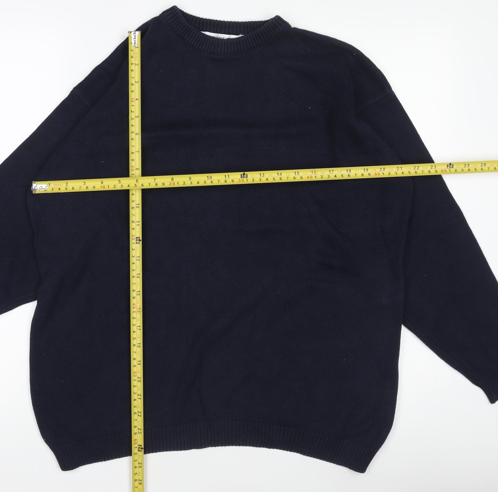 Jumpers Mens Navy Blue Cotton Crew Neck Pullover Jumper Size L