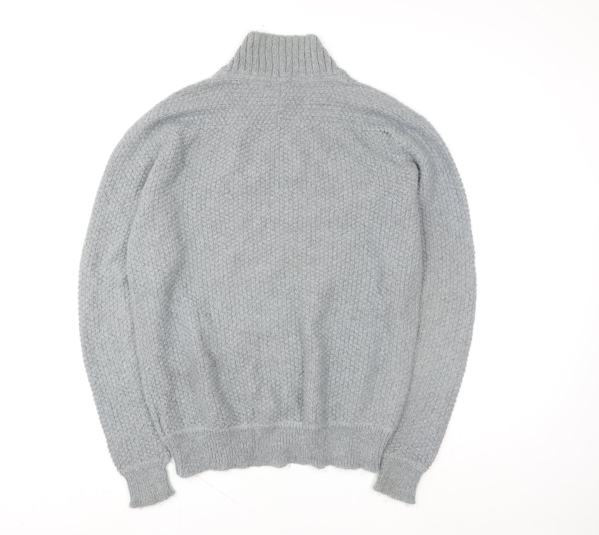 Junk de Luxe Men Grey XL Chunky Knit Mohair Henley Jumper