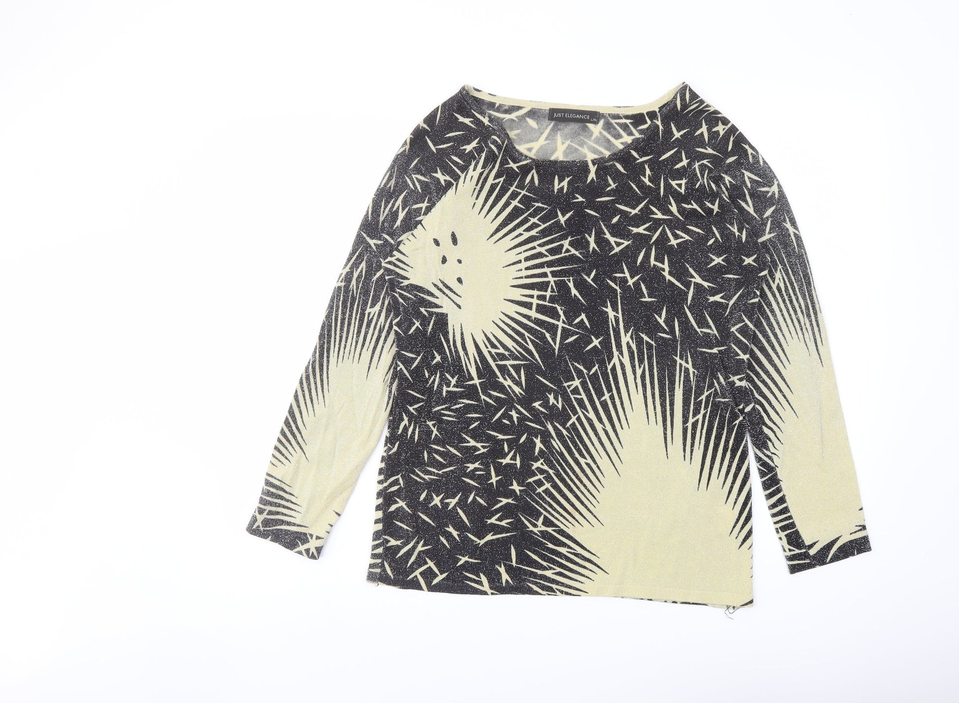 Just Elegance Womens Black Round Neck Geometric Viscose Pullover Jumper Size L