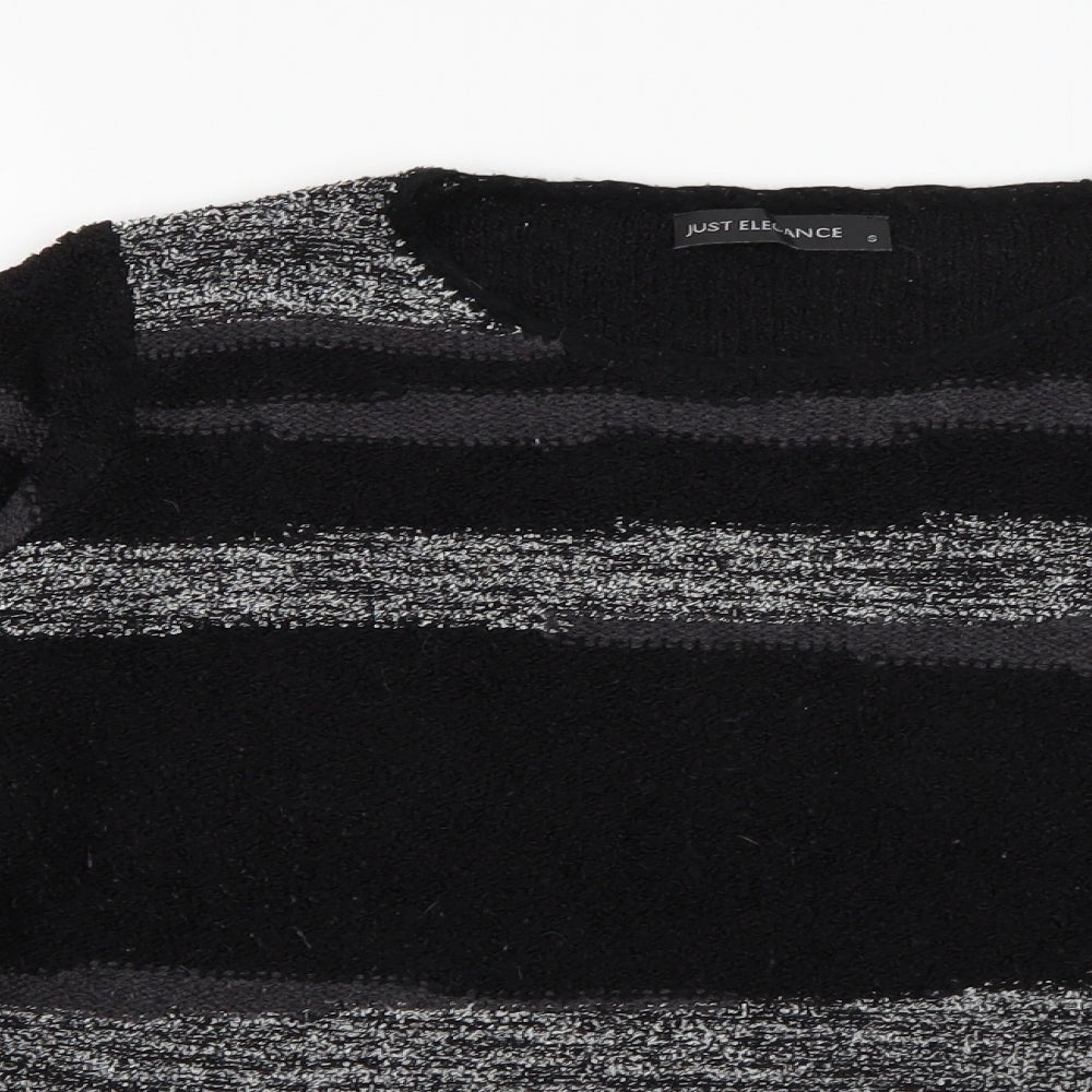 Just Elegance Womens Black Round Neck Striped Acrylic Pullover Jumper Size S