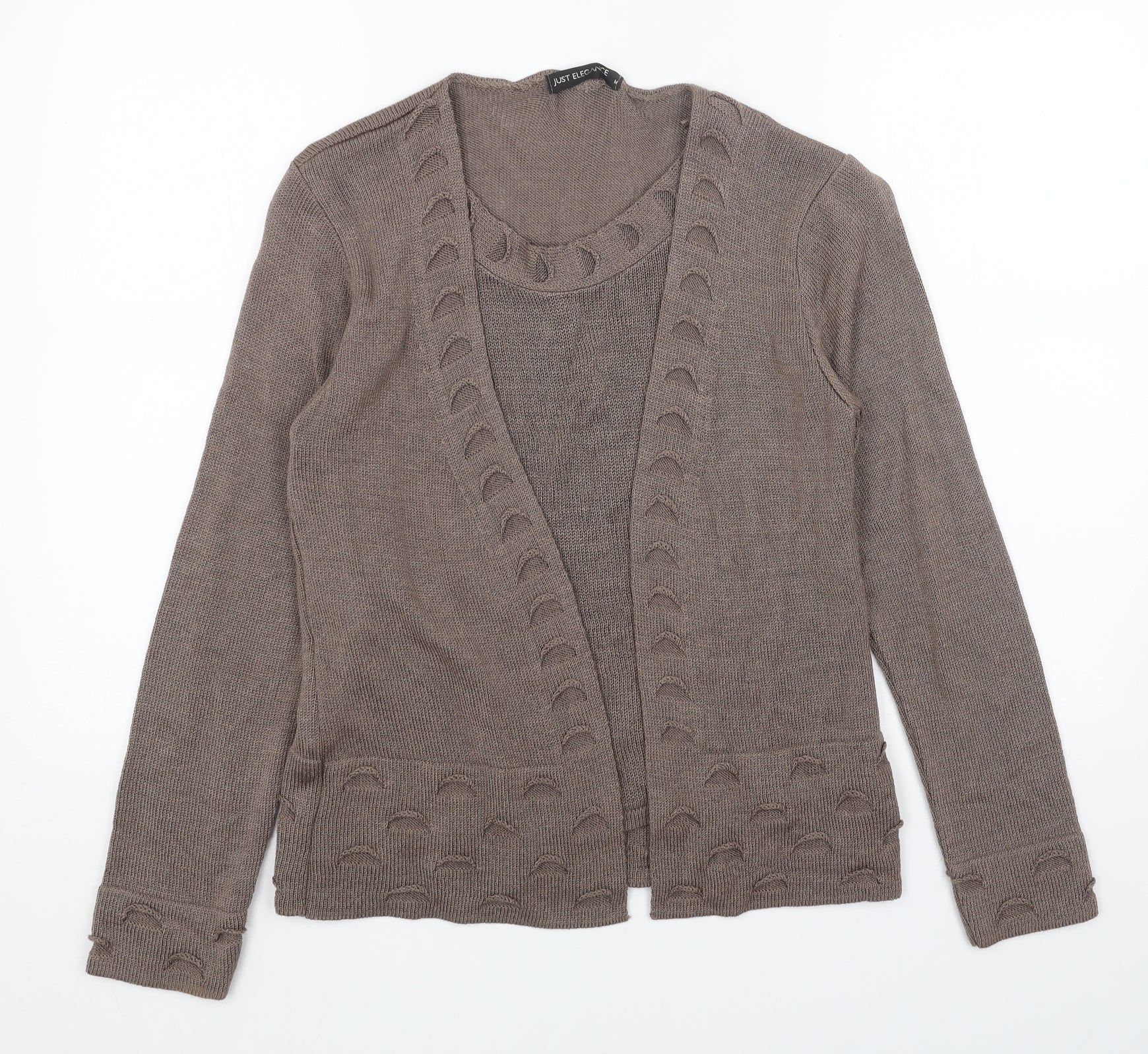 Just Elegance Womens Brown Scoop Neck Acrylic Cardigan Jumper Size M - 2 Piece