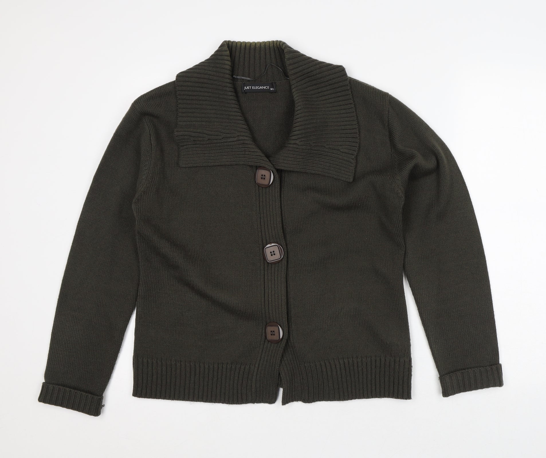 Just Elegance Womens Green V-Neck Acrylic Cardigan Jumper Size M