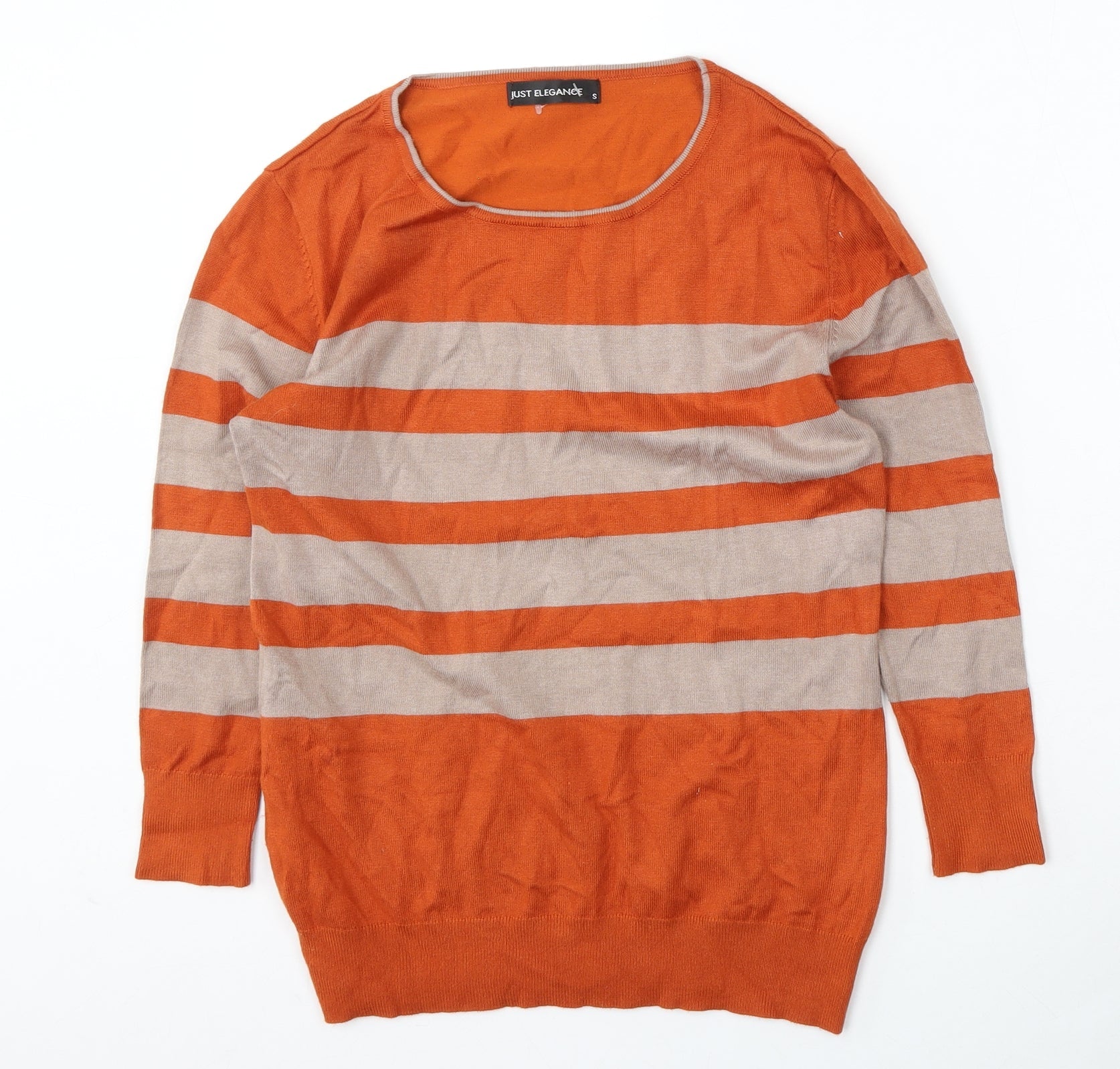 JUST ELEGANCE Womens Multicoloured Round Neck Striped Viscose Pullover Jumper Size S