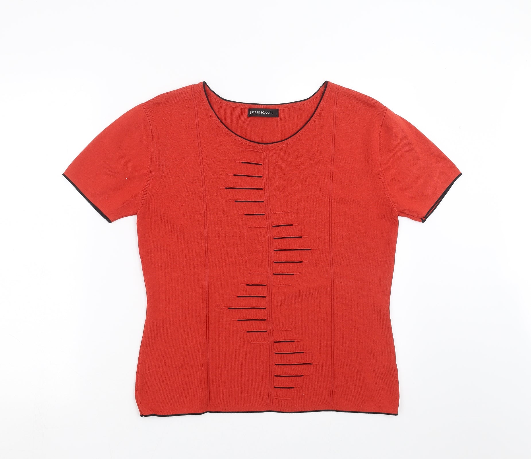 Just elegance Womens Orange Geometric Rayon Pullover Jumper Size L