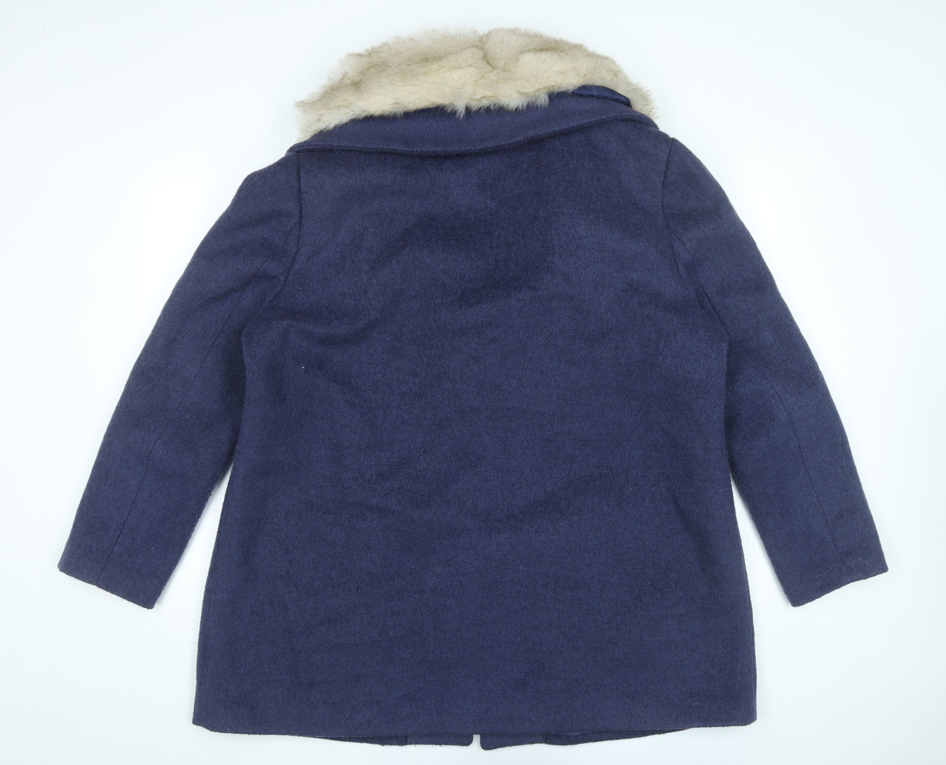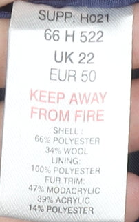 Kaleidoscope Women’s Blue Wool Blend Fur Trim Coat UK 22