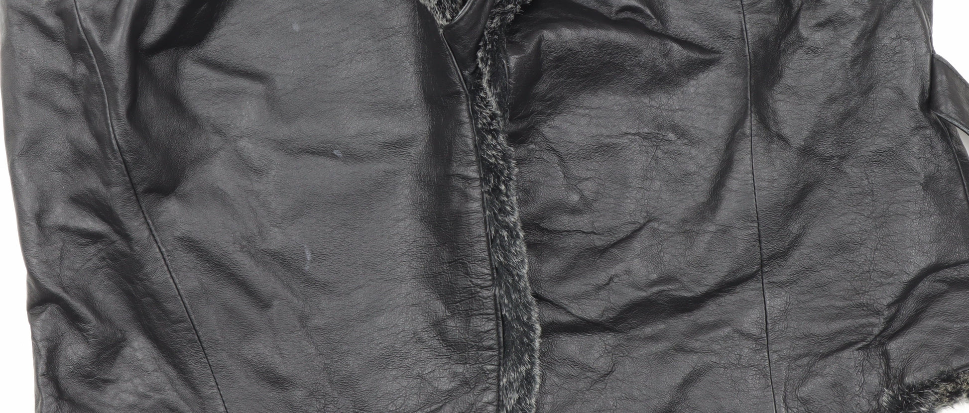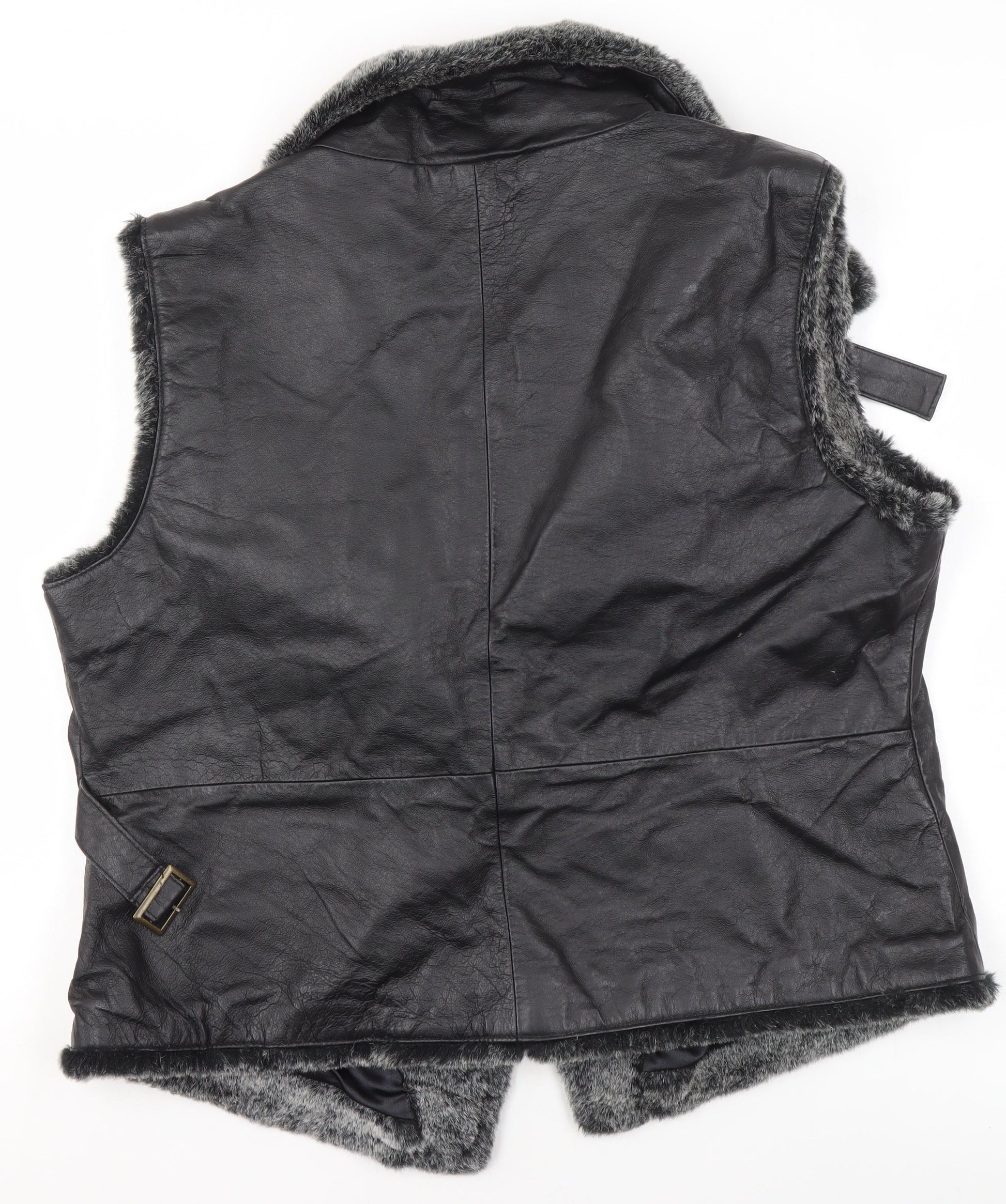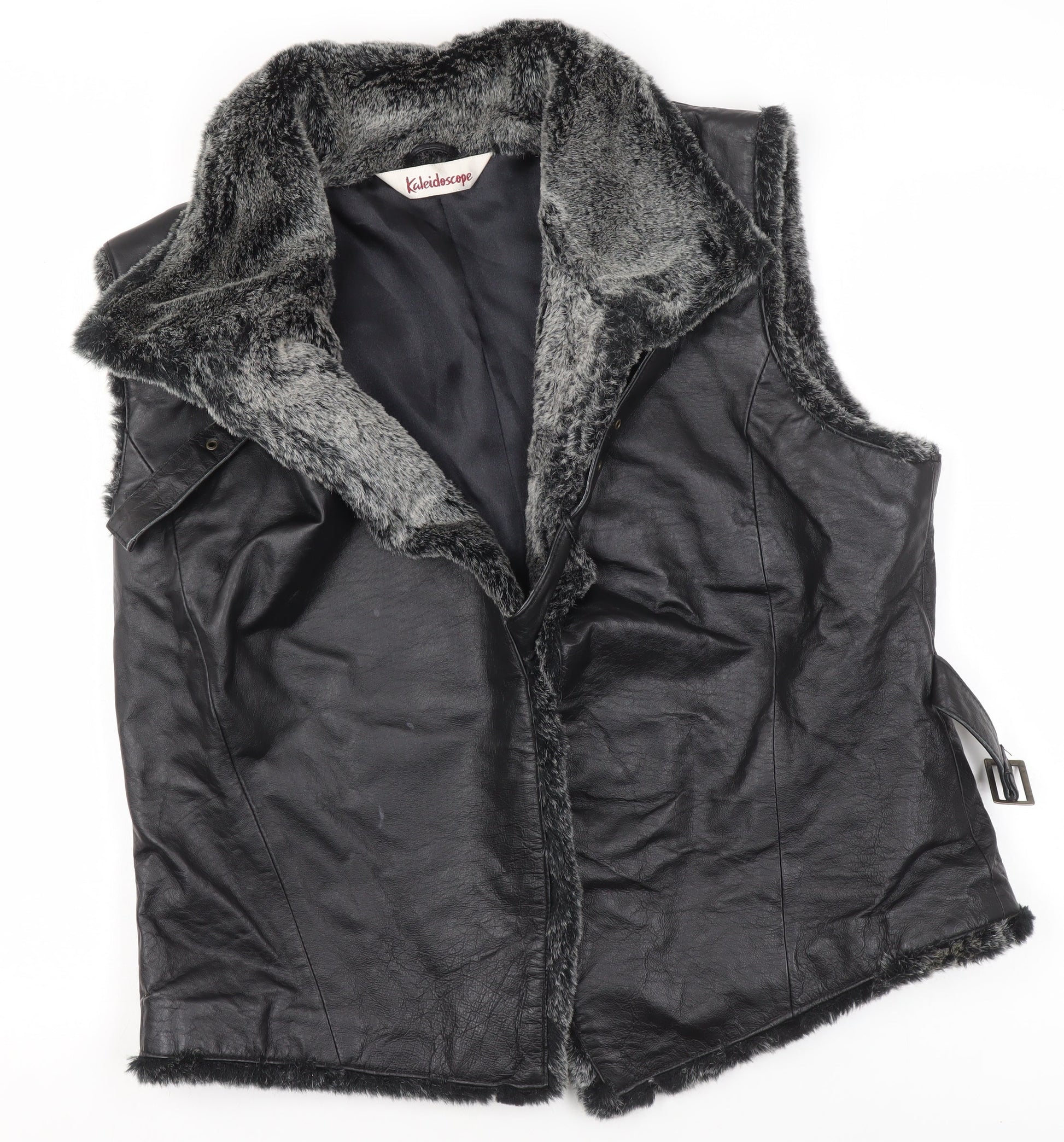 Kaleidoscope Women's Black Faux Fur Trim Leather Waistcoat UK 18