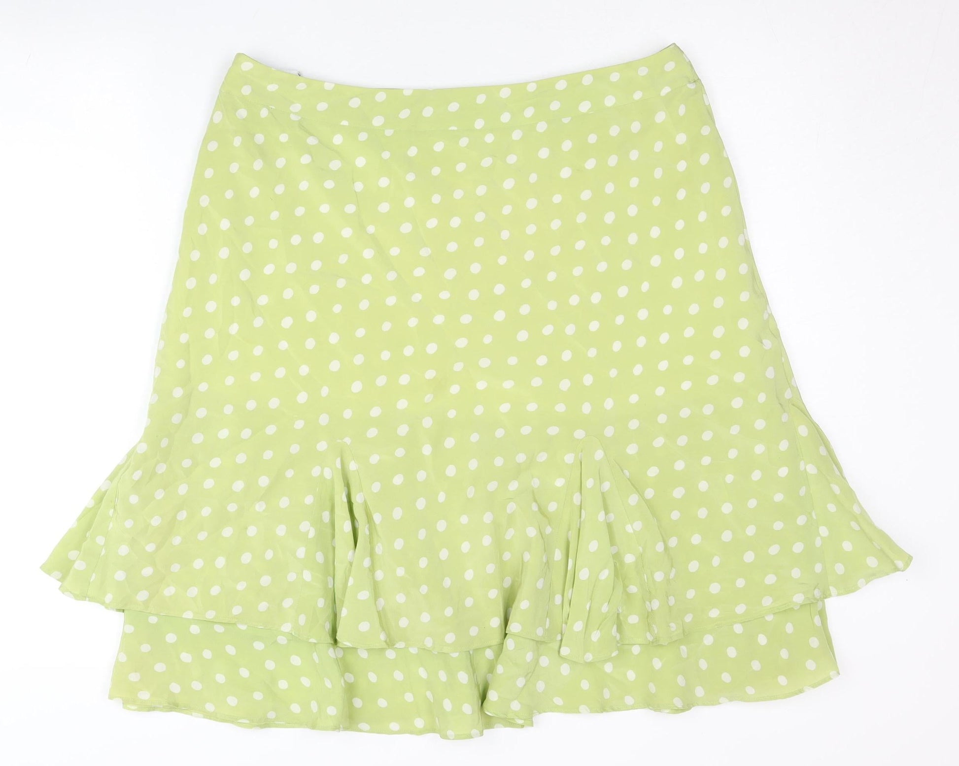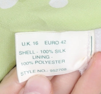 Kaliko Women Green Polka Dot Flare Silk Skirt Size 16 Knee Length