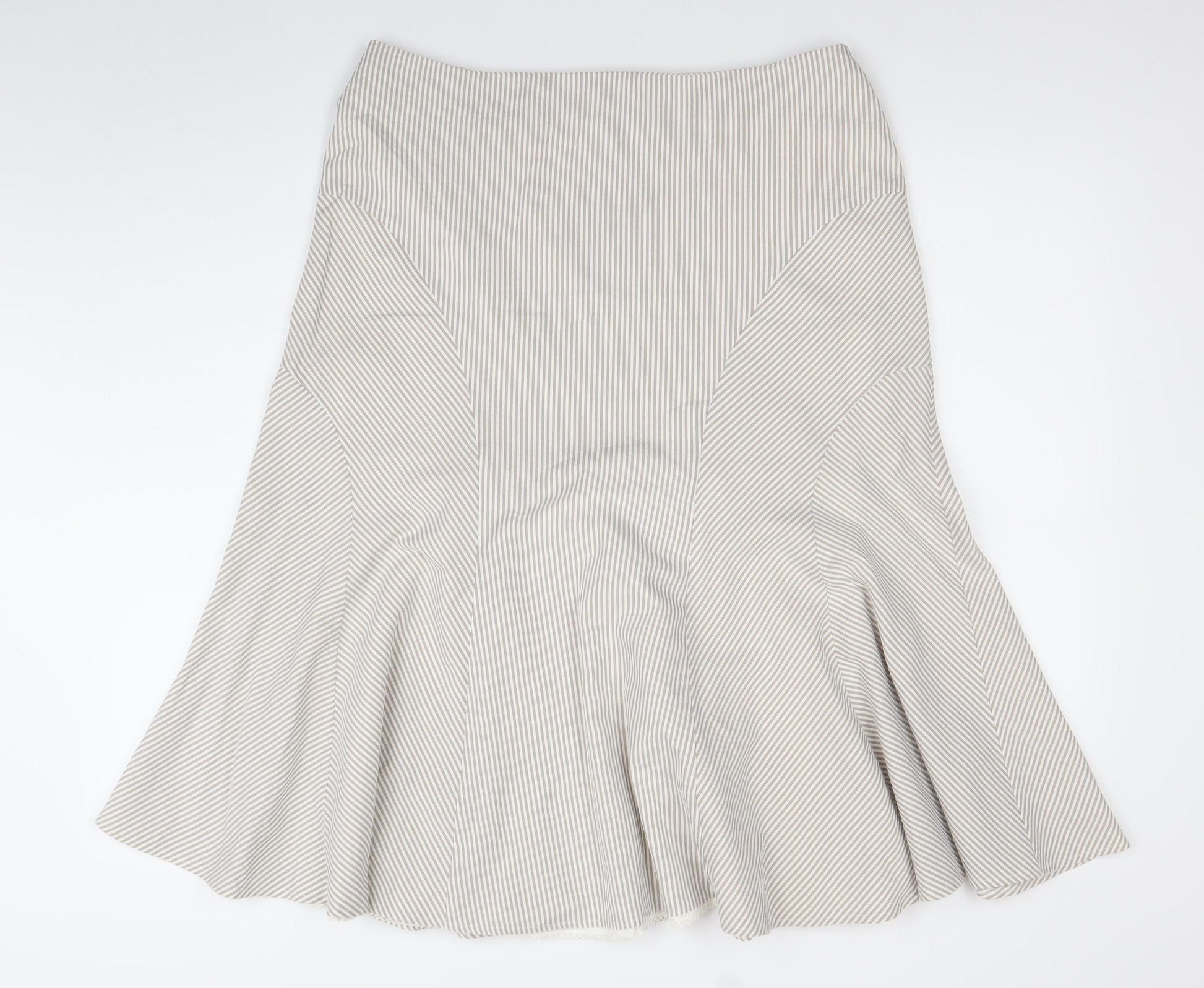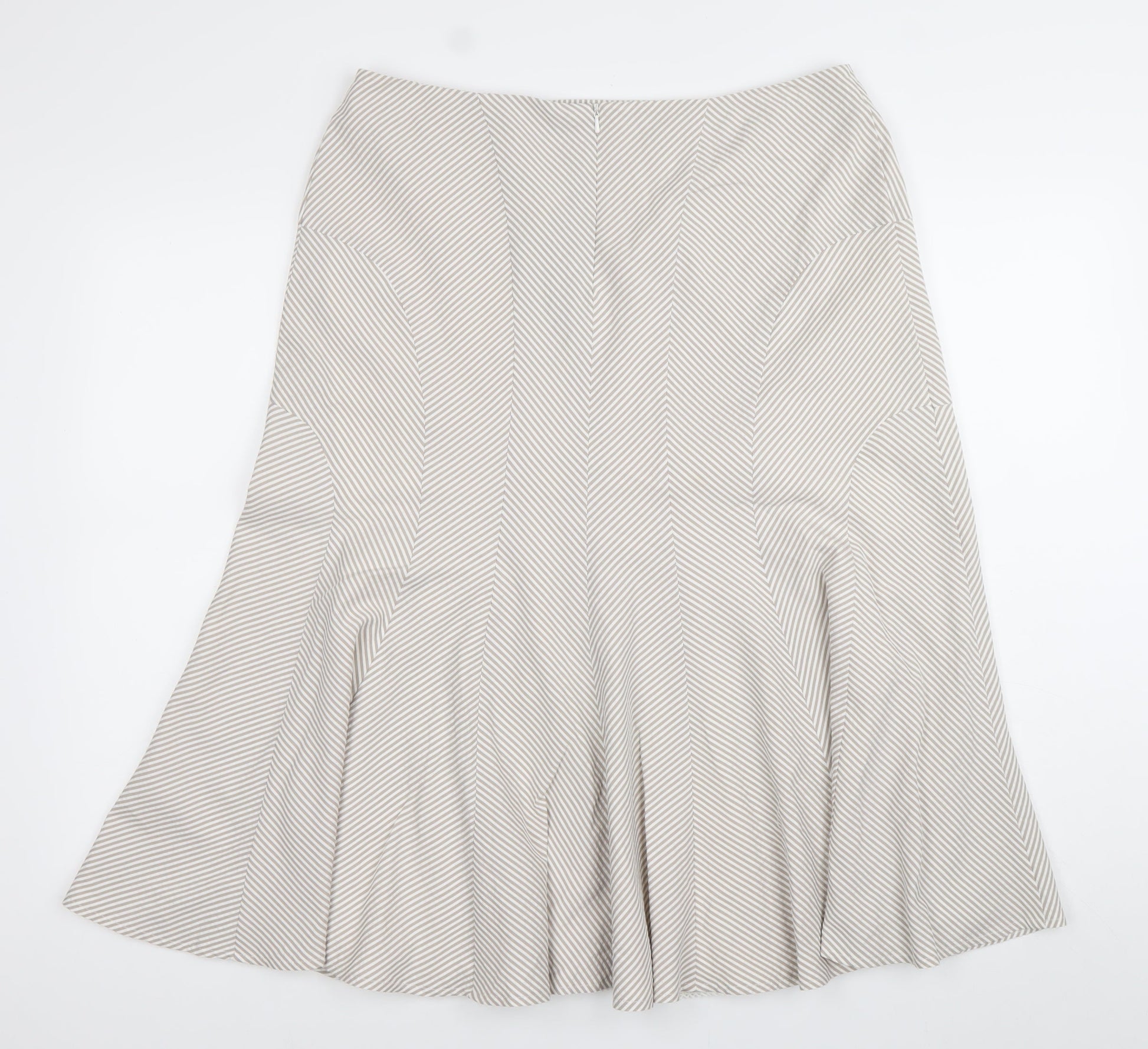 Kaliko Women’s Beige Striped Midi Flare Skirt Size 14 Cotton