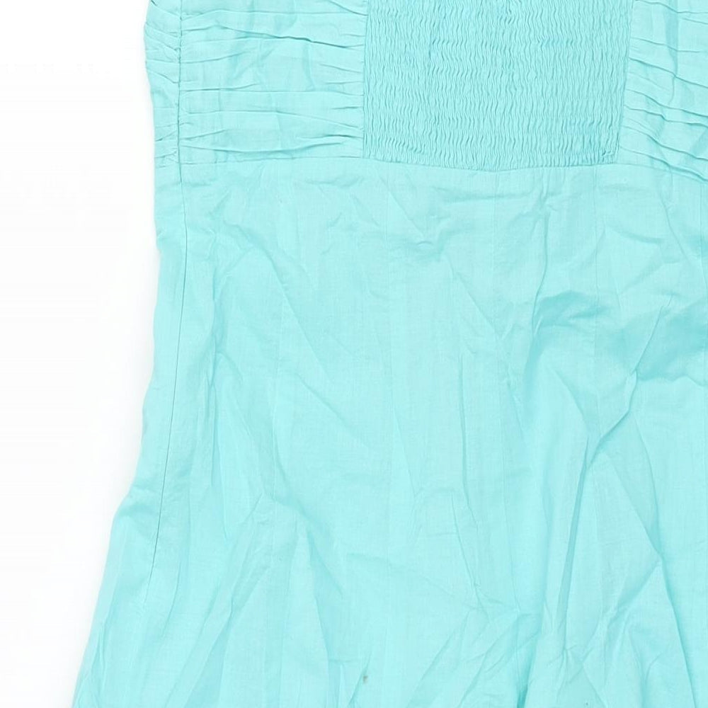 Kaliko Womens Blue Cotton Fit & Flare Size 8 Sweetheart Zip - Floral Embroidery Tie Detail