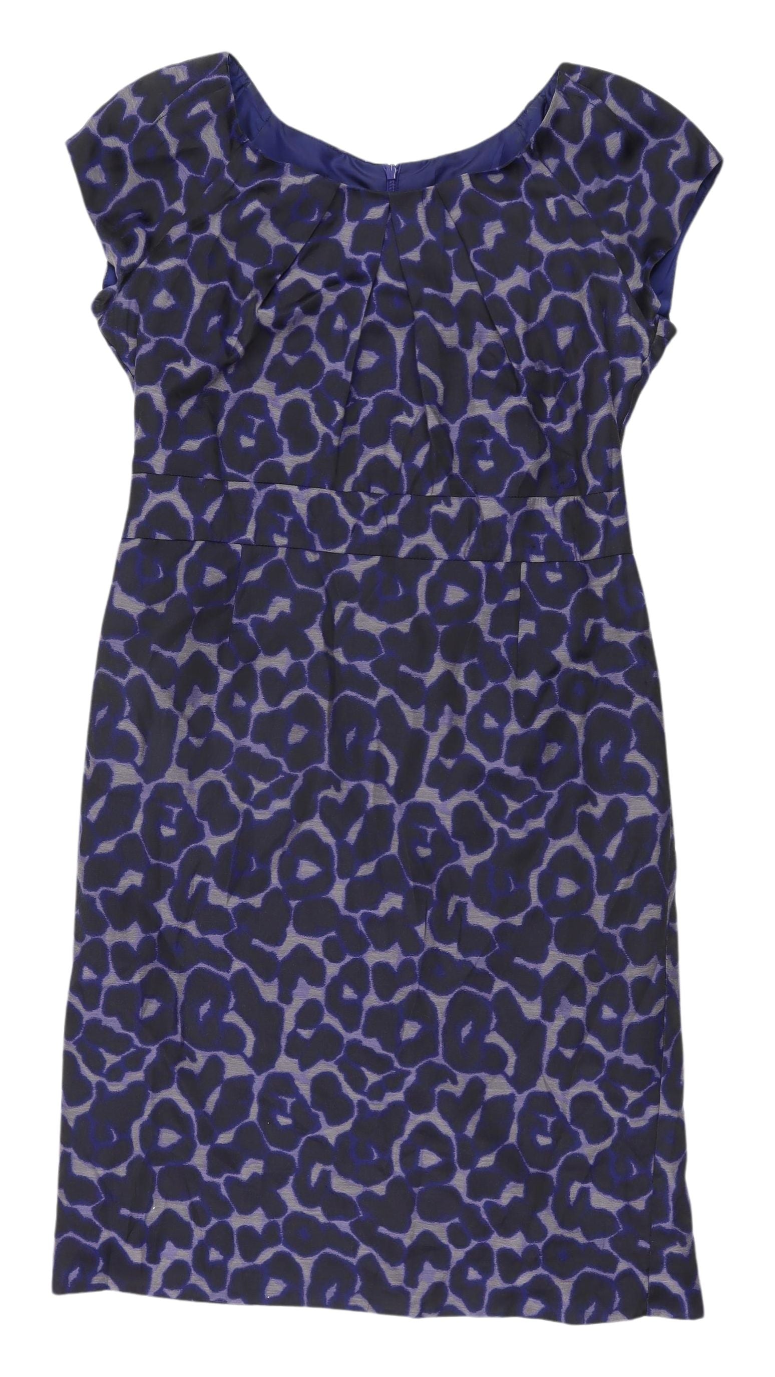 Kaliko Women's Blue Leopard Print Sheath Dress, Size 14