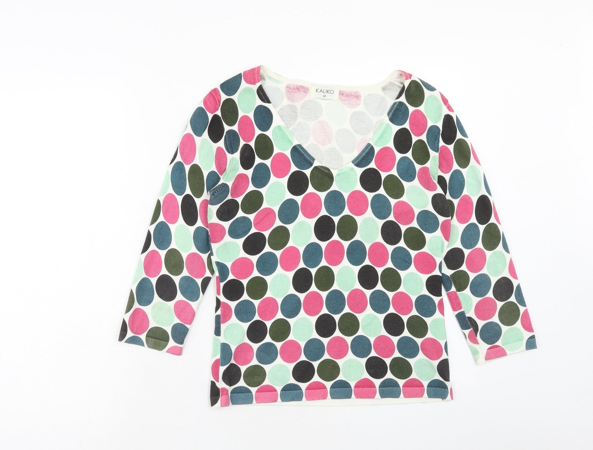 Kaliko Womens Multicoloured V-Neck Geometric Viscose Pullover Jumper Size 10