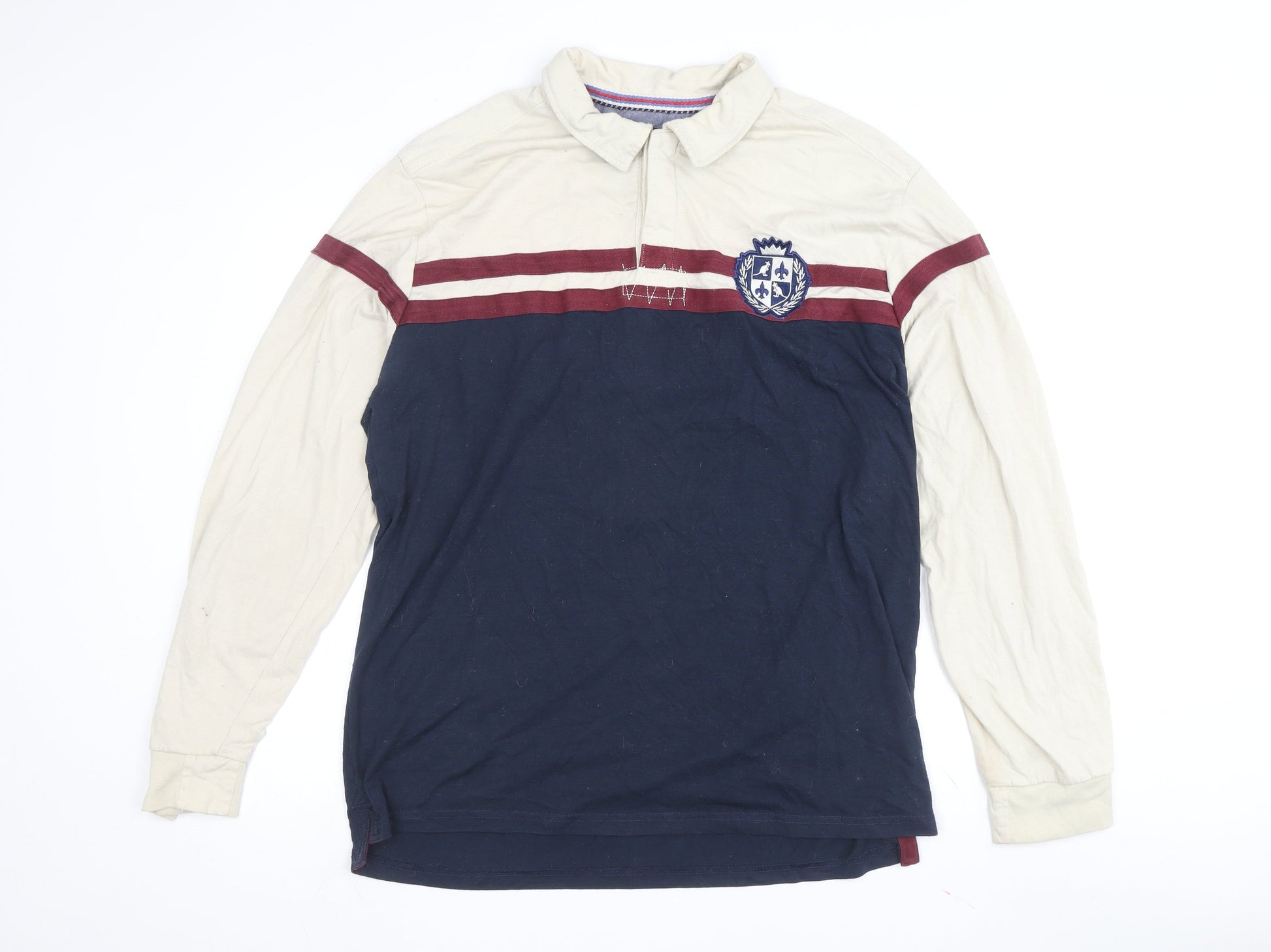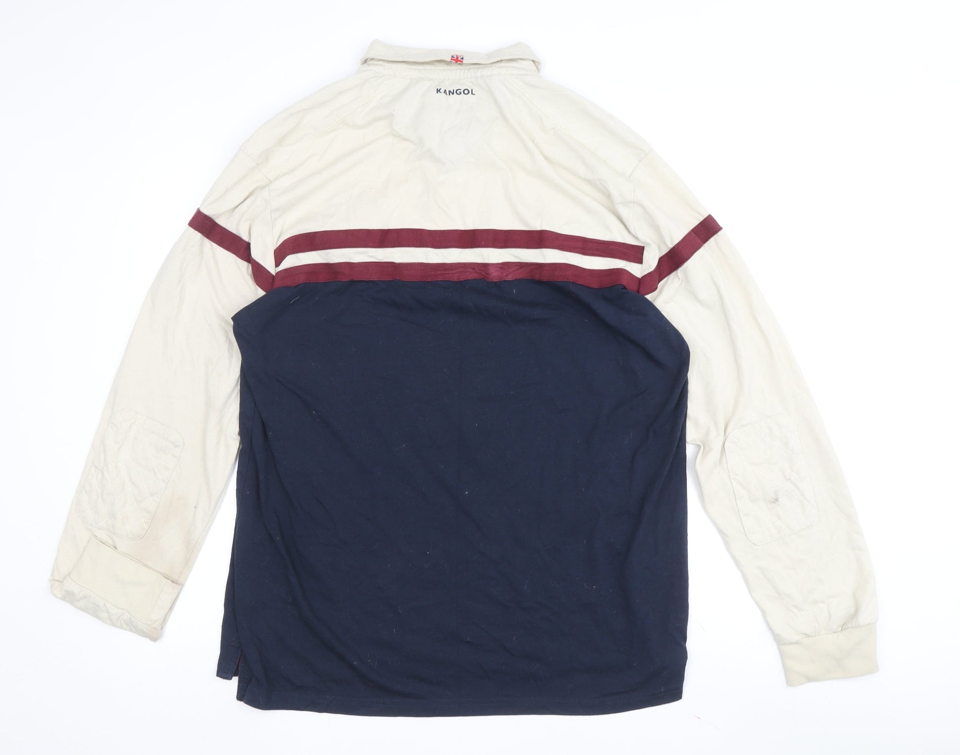 Kangol Men's 2XL Beige Blue Stripe Polo