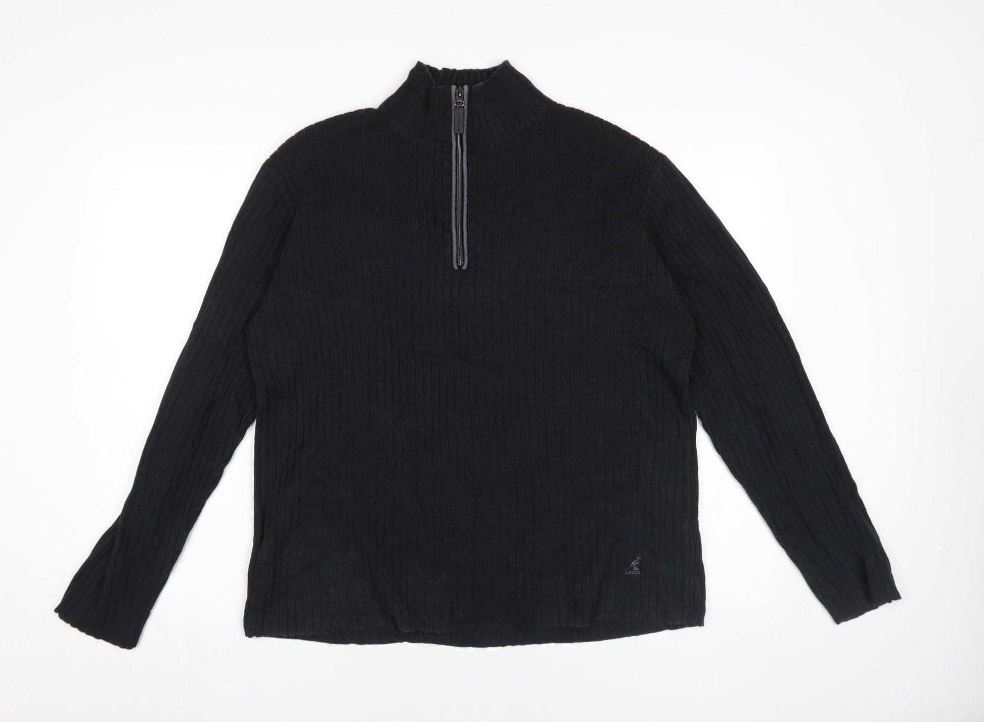 Kangol Men's Black XL 1/2 Zip Pullover Cotton Jumper